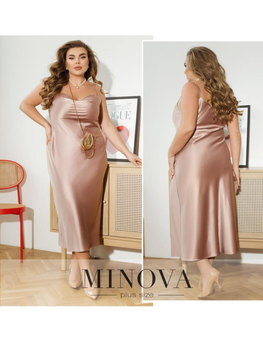 Втілення вишуканості та розкоші – це наша нова класична сукня-комбінація з щільного шовку. Її міді довжина створює елегантний силует, що делікатно облягає тіло, підкреслюючи кожен вигин. Атласна тканина, з її благородним блиском, надає сукні неперевершеного шарму і робить образ справжнім втіленням жіночності. Однією з особливостей цієї сукні є регульовані бретельки, що дозволяють підлаштувати посадку під ваші індивідуальні потреби, забезпечуючи максимальний комфорт. Сукня відрізняється своїм мінімалістичним дизайном, що дозволяє їй бути універсальною і підходити для різних випадків. Вона може стати чудовим вибором як для вечірнього виходу, так і для більш офіційних подій. Гладка текстура та щільність атласу забезпечують відчуття комфорту, а її благородний вигляд створює атмосферу розкоші. Ця сукня-комбінація ідеально поєднується з класичними підборами та мінімалістичними аксесуарами, доповнюючи ваш образ нотками елегантності. Вона здатна перетворити будь-який вихід у подію, залишаючи по собі незабутнє враження. На моделі представлений розмір 50-52