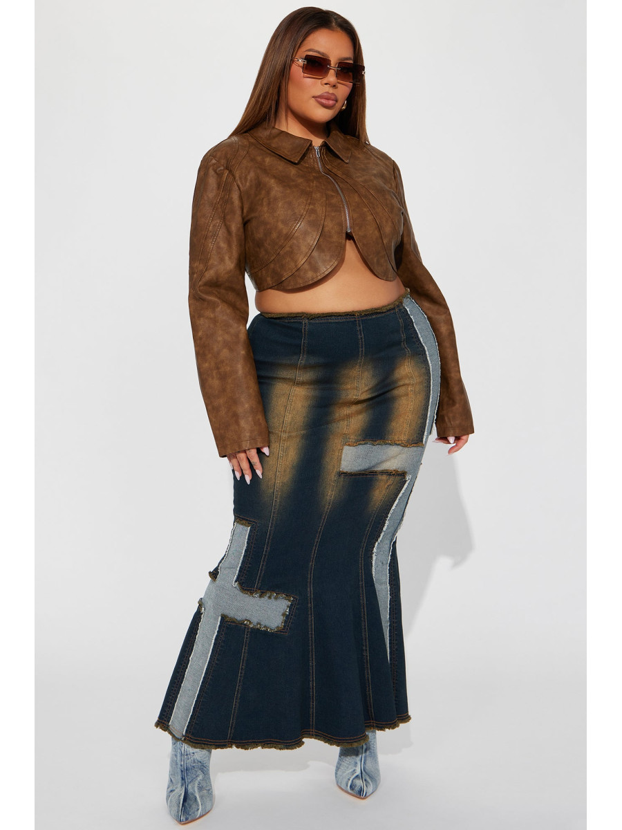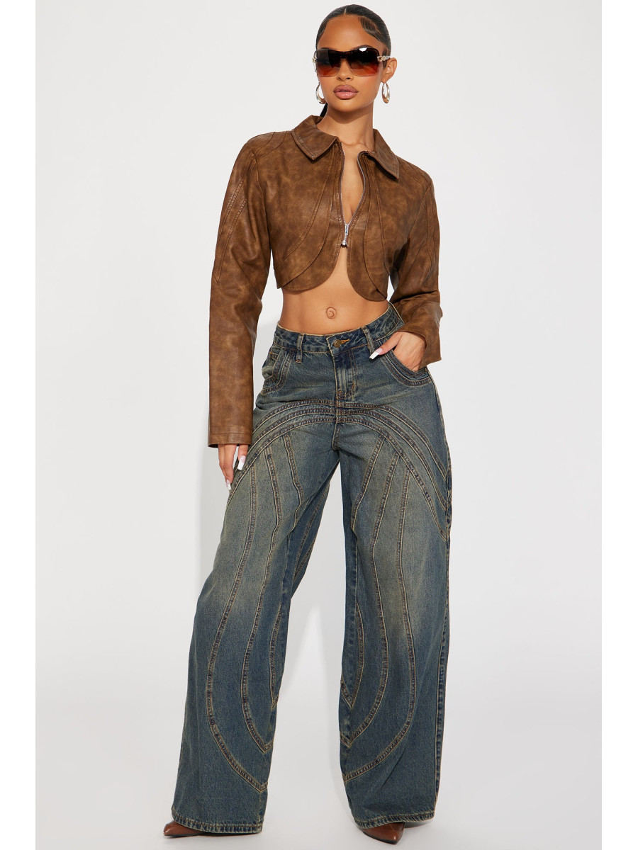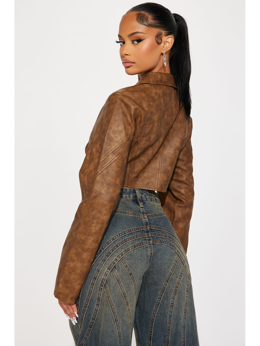 Ефектний топ зі штучної шкіри з довгими рукавами, коміром та передньою застібкою-блискавкою. Ця коротка модель з підкладкою та унікальним ефектом потертості, який робить кожен виріб неповторним. Склад: основа - 50% поліуретан, 50% віскоза; підкладка - 95% поліестер, 5% спандекс.