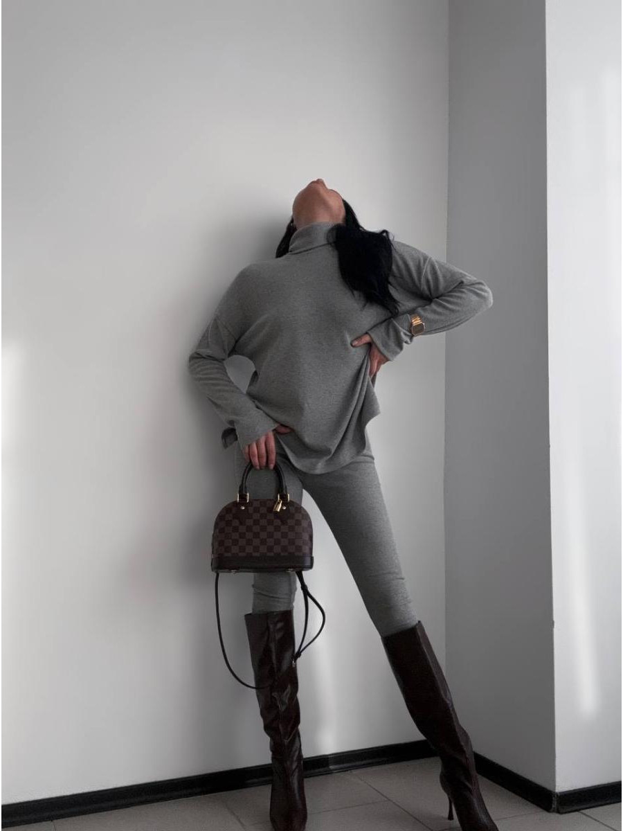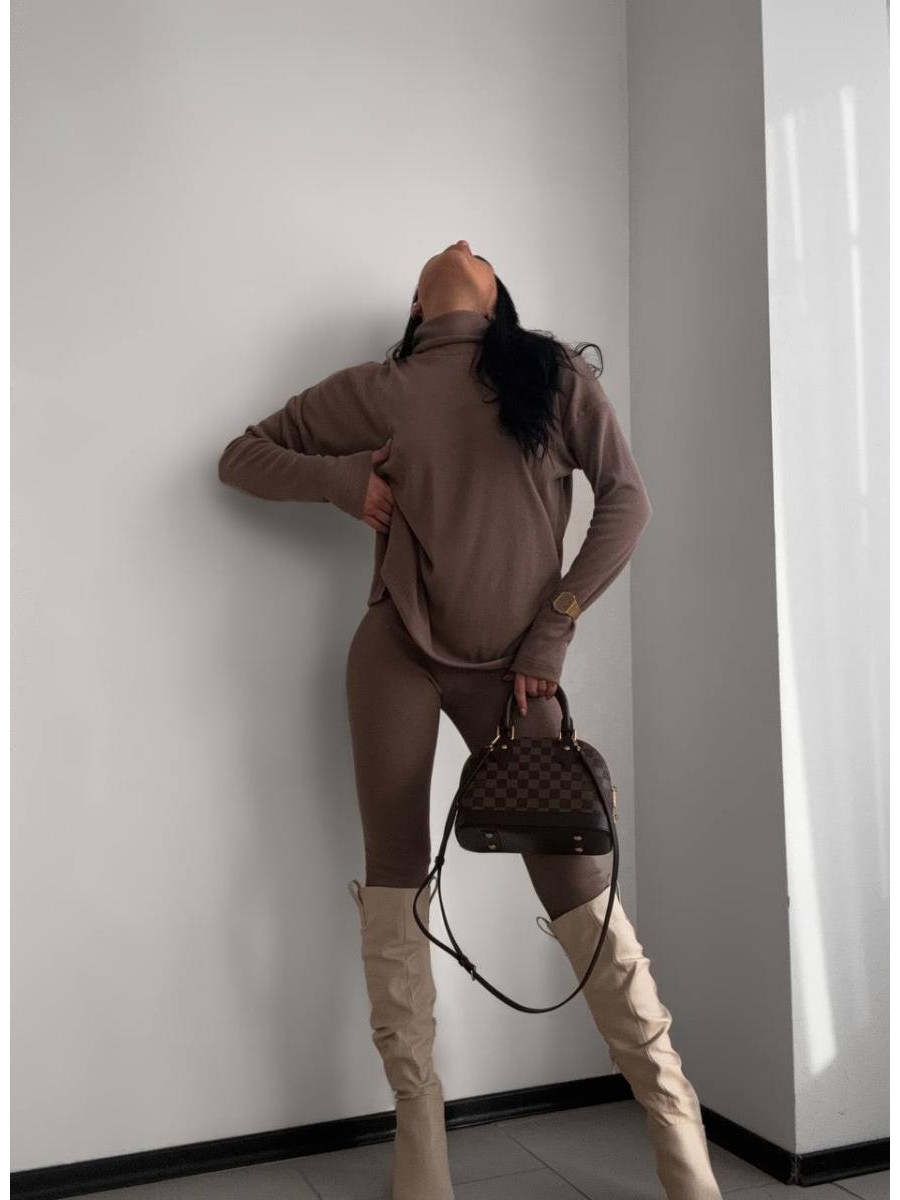 Опис: Костюм кофта + лосини з приємної до тіла тканини — рубчік з начосом.Кофта з комфортним коміром-стійкою, по боках розрізи. Лосини з високою посадкою без бічних швів, на талії гумка.