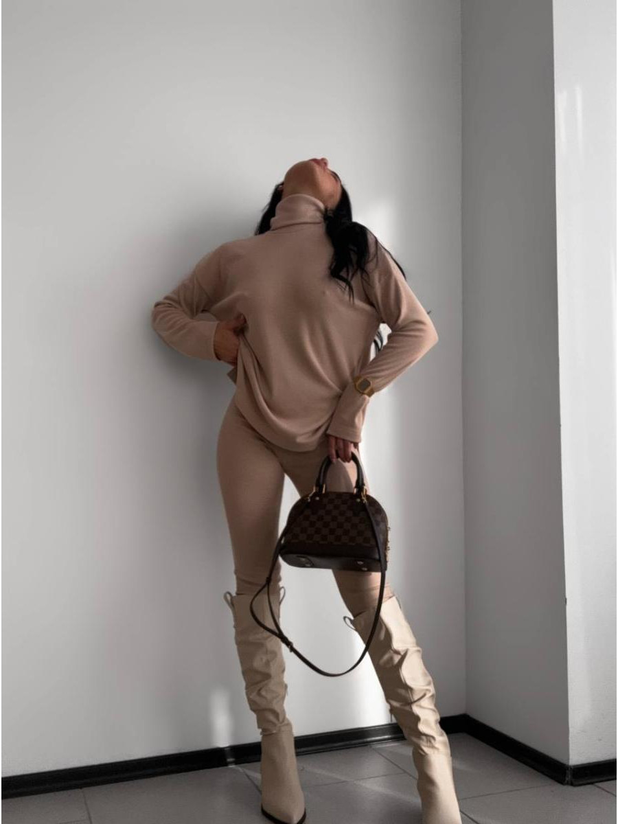 КОСТЮМ З НАЧОСОМ РЕАЛ ФОТО Мод. Розміри: 42-44, 46-48 Колір: світлий беж, моко, сірий, чорний