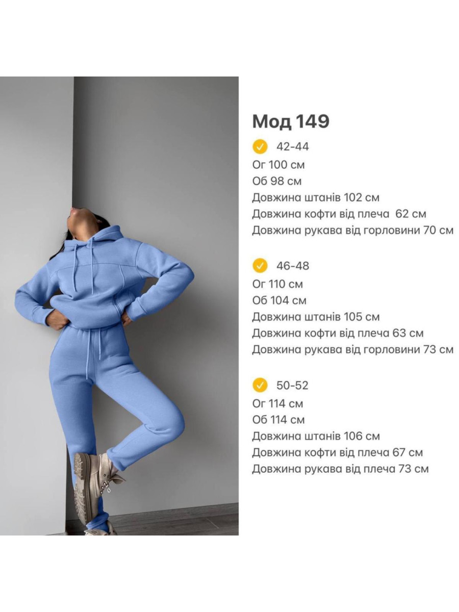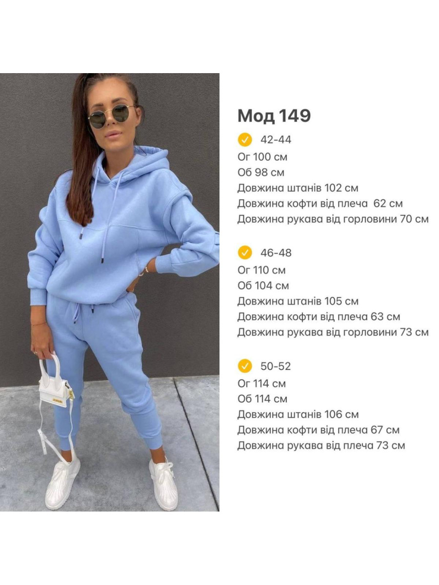 ▪️Теплий костюм ▪️Мод ▪Тканина: Дорога Турецька тринить «ПІН’Є»(м’яка, тепла, не кашлатиться, не линяє), манжет на рукавах рибани, змійки на кишенях у колір тканини ▪️Кольори: Графіт, ментол, голубий, св беж, чорний ▪Розміри: 42-44; 46-48; 50-52
