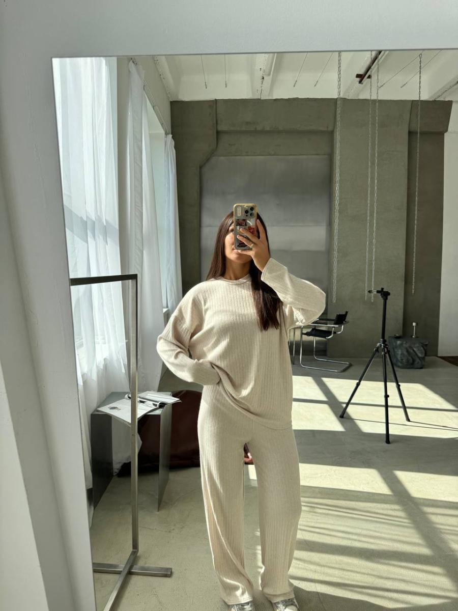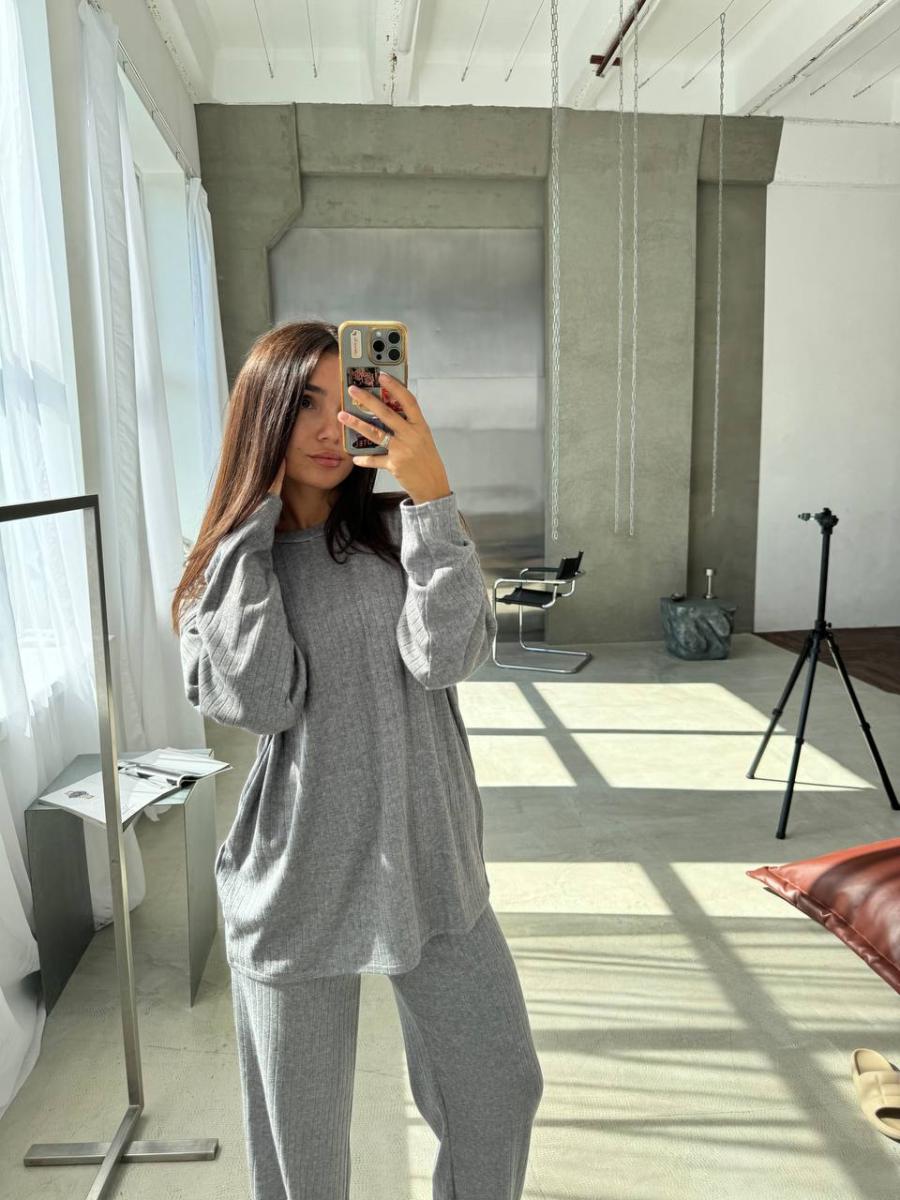 Костюм(штани+светр) Модель: Розмір: 42-44, 46-48 Тканина: ангора широкий рубчик Колір: бежевий, чорний, сірий