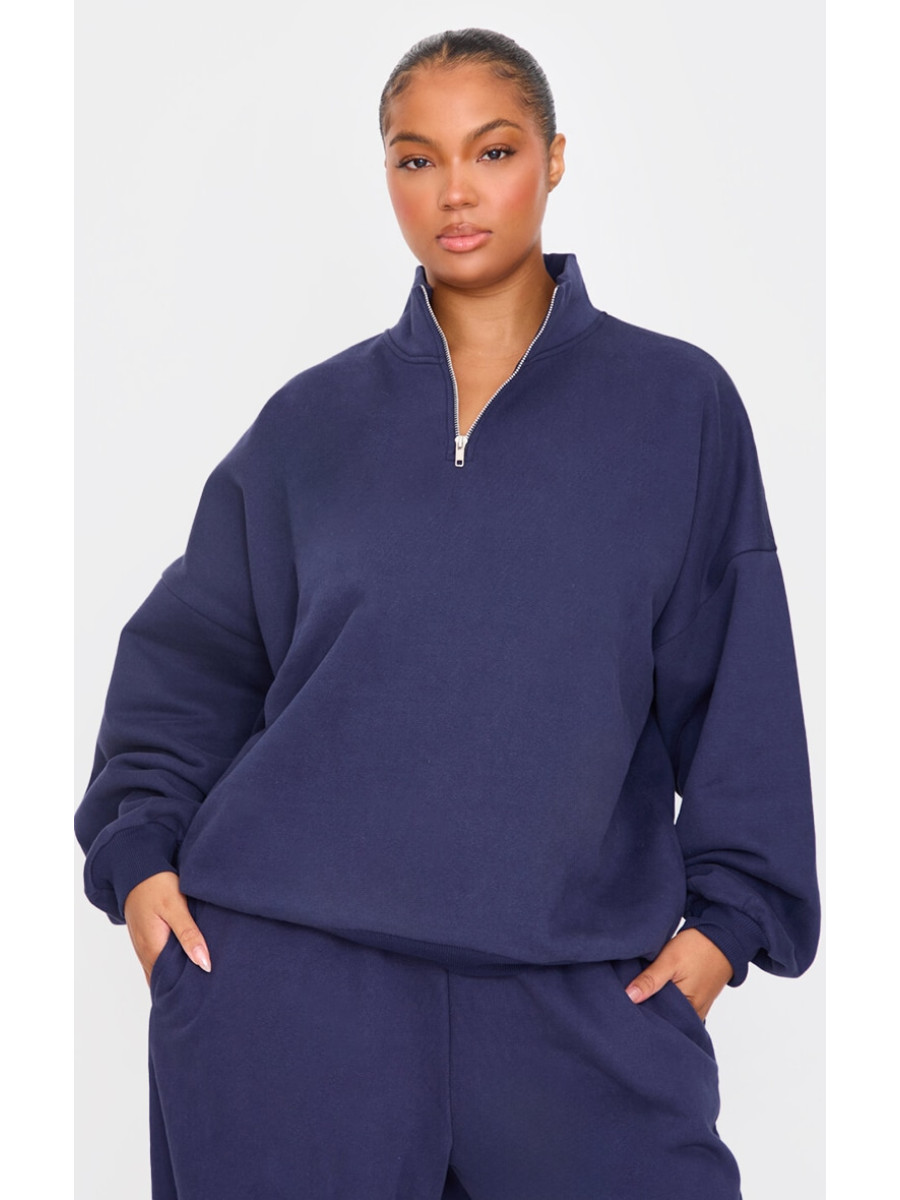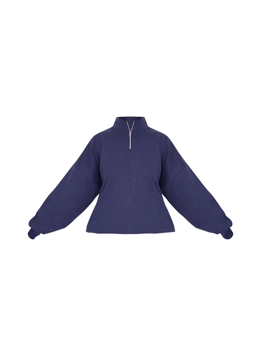 Додатковий темно-синій світшот преміум-класу з високим горлом і блискавкою