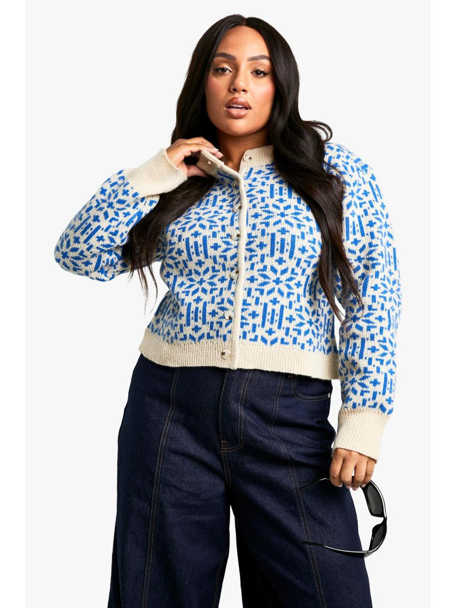 Плюс преміальний в'язаний кардиган із різдвяною ярмаркою