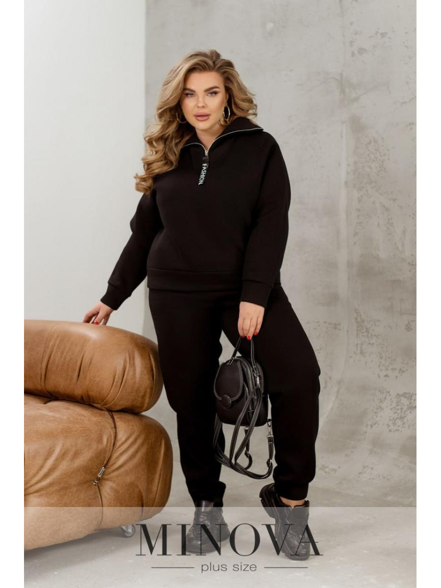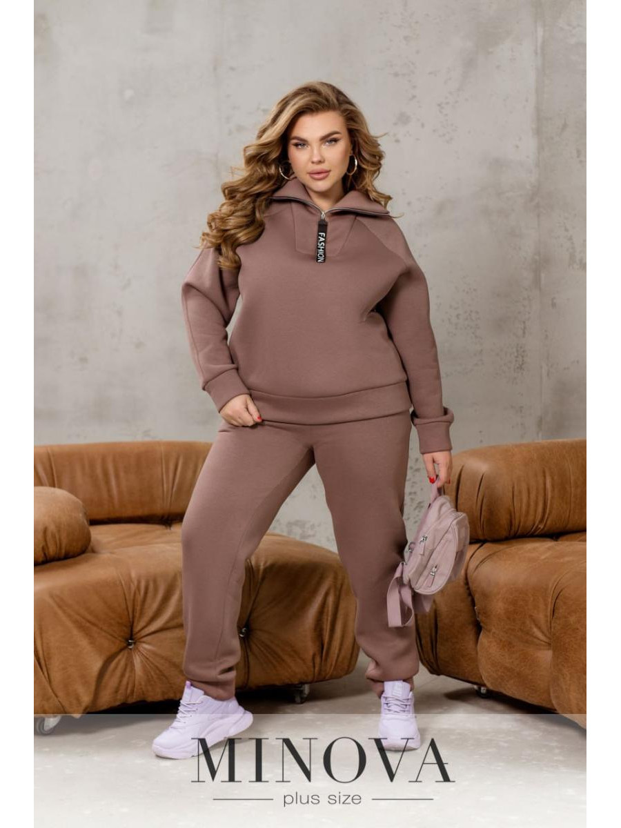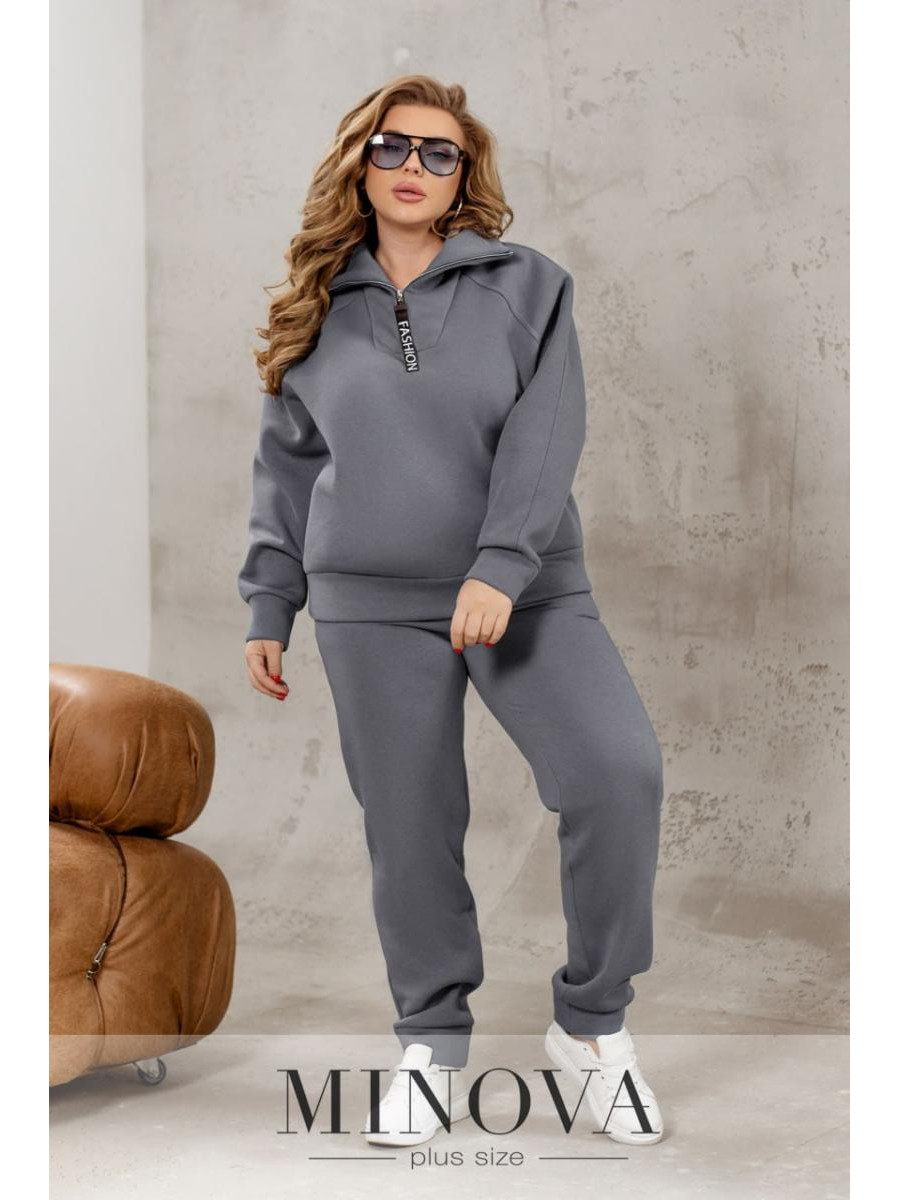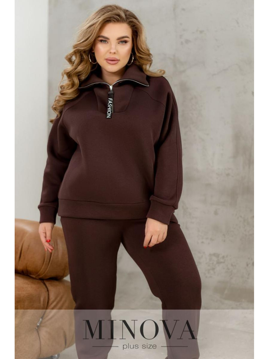 Спортивний костюм із трьохнитки на флісі, забезпечує ідеальне поєднання тепла та комфорту в прохолодну погоду. Худі має зручну змійку і високу горловину, що ефективно захищає шию від холоду. Довгі рукави з манжетами забезпечують комфортну посадку та зберігають тепло. Штани з високою посадкою на еластичній гумці підкреслюють фігуру та забезпечують максимальну свободу рухів. Манжети внизу штанів додають стильного вигляду та додаткового тепла. Бокові кишені роблять костюм практичним і зручним для щоденного носіння або активного відпочинку. На моделі представлений розмір 50-52