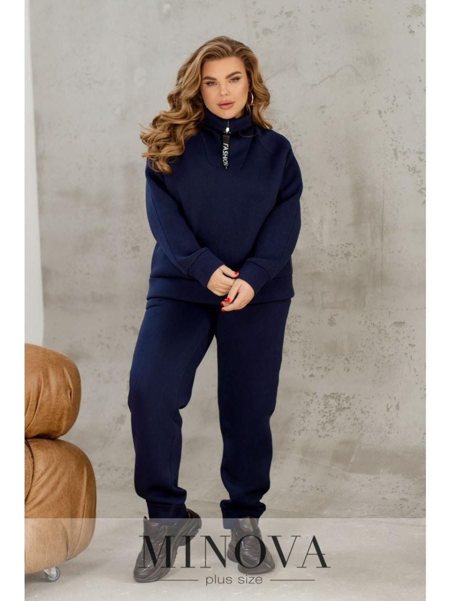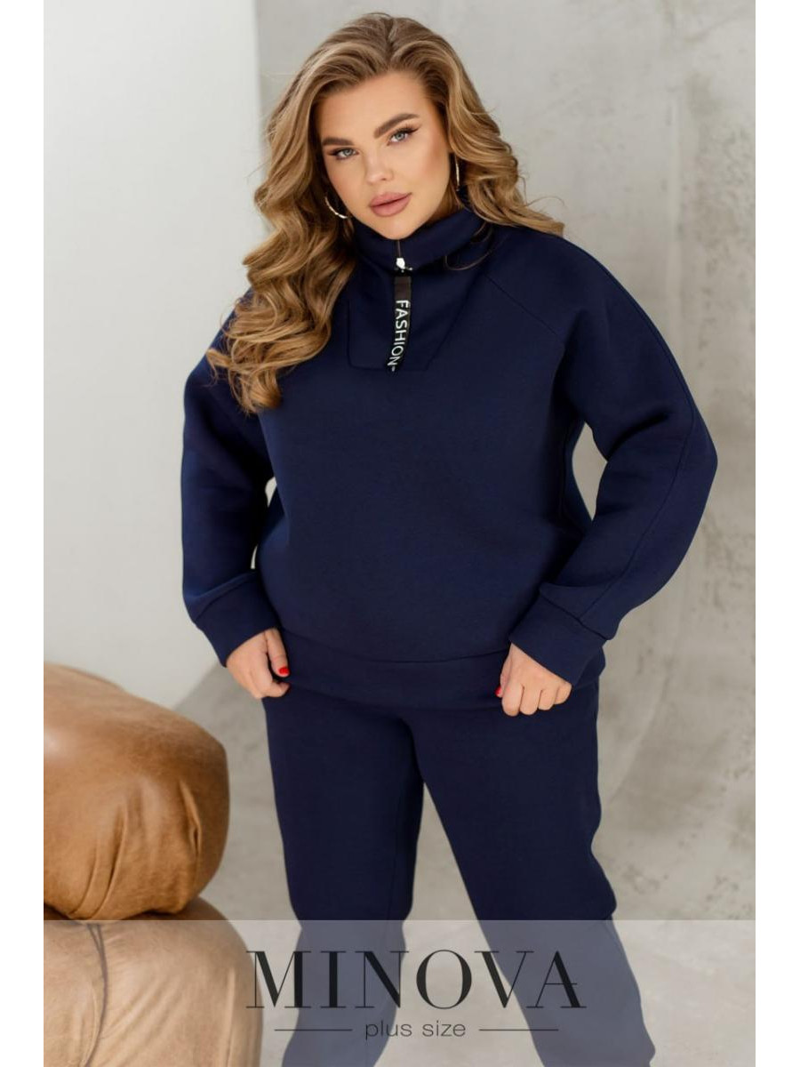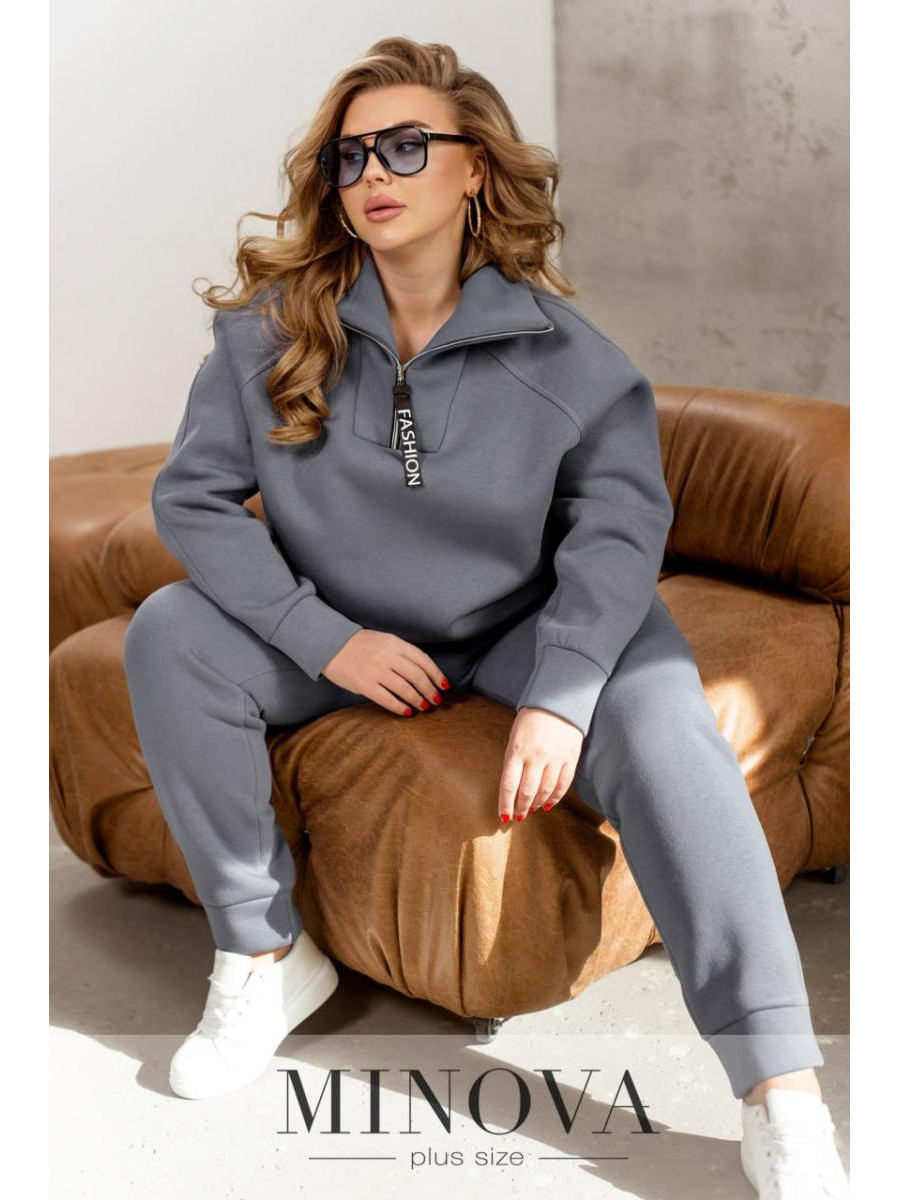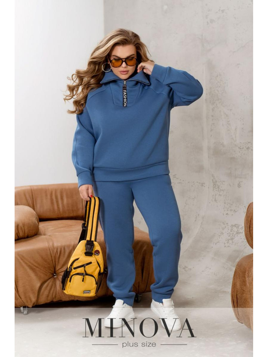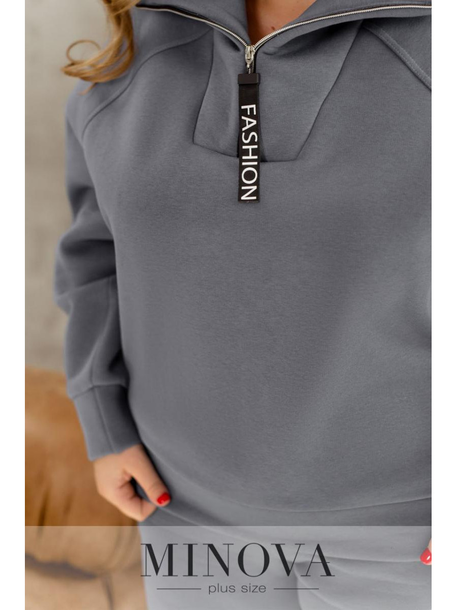 Спортивний костюм із трьохнитки на флісі, забезпечує ідеальне поєднання тепла та комфорту в прохолодну погоду. Худі має зручну змійку і високу горловину, що ефективно захищає шию від холоду. Довгі рукави з манжетами забезпечують комфортну посадку та зберігають тепло. Штани з високою посадкою на еластичній гумці підкреслюють фігуру та забезпечують максимальну свободу рухів. Манжети внизу штанів додають стильного вигляду та додаткового тепла. Бокові кишені роблять костюм практичним і зручним для щоденного носіння або активного відпочинку. На моделі представлений розмір 50-52