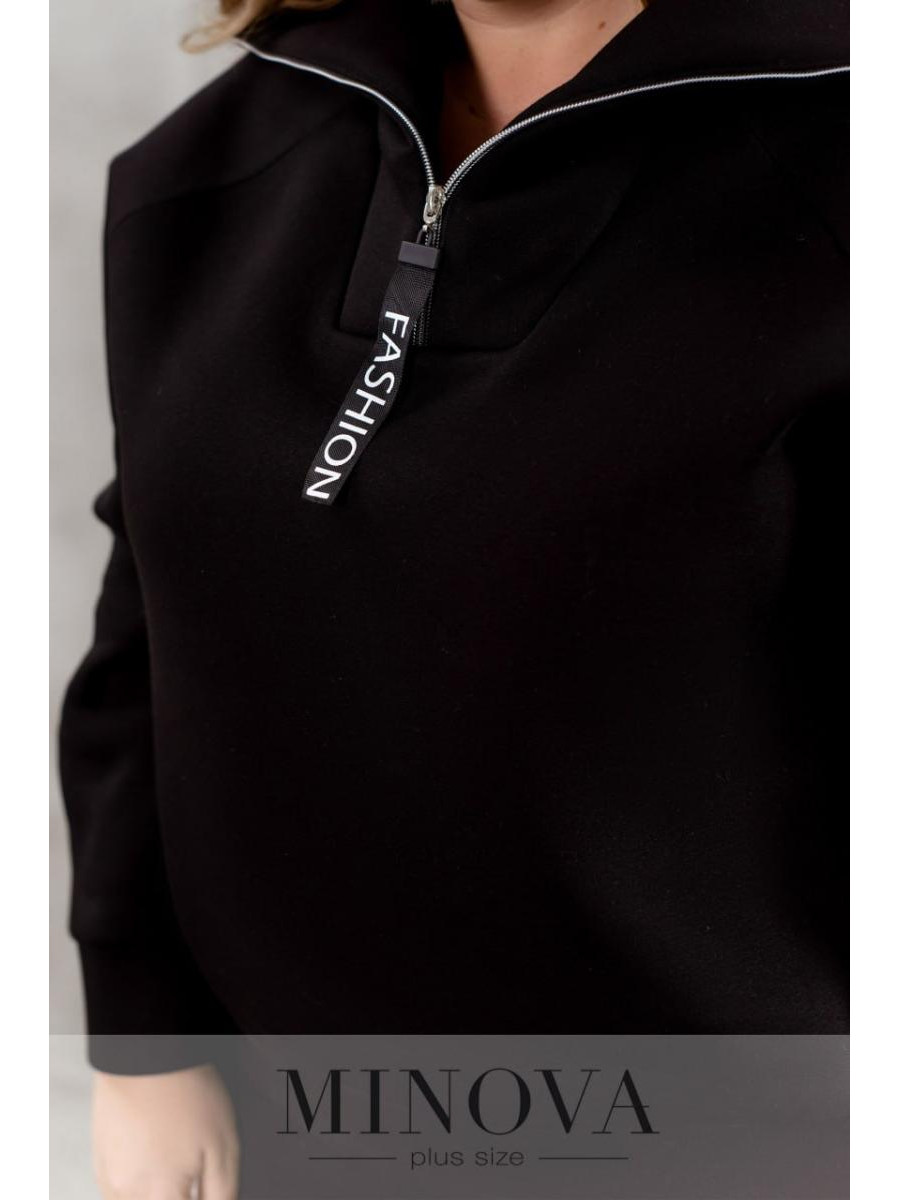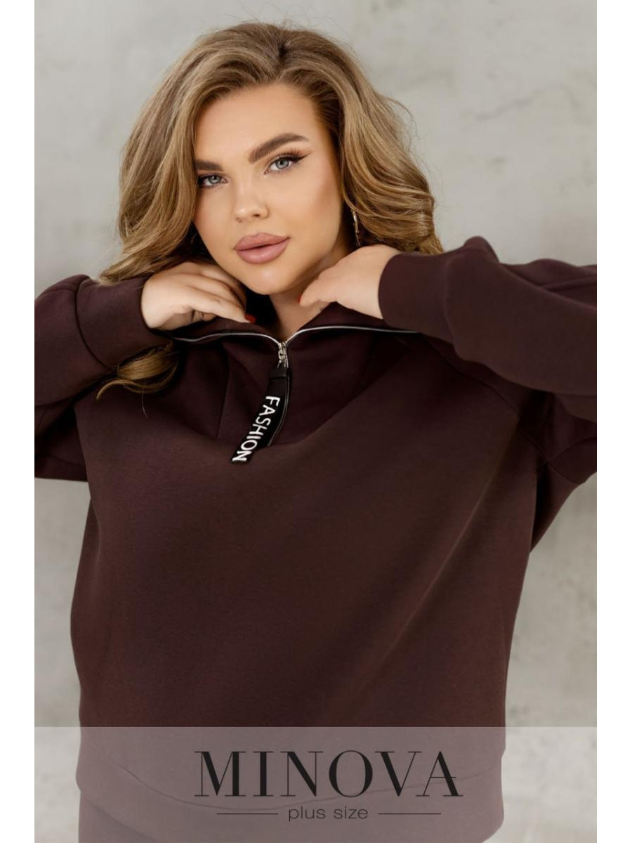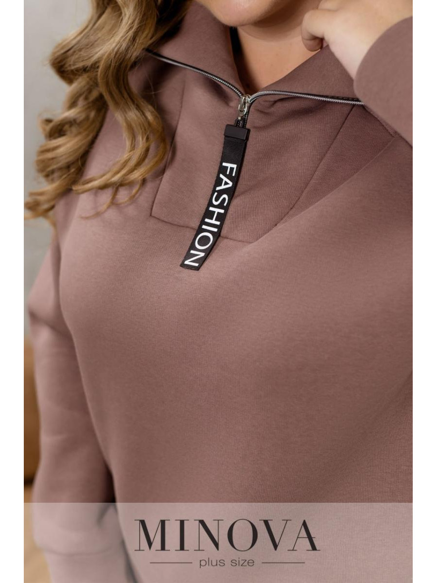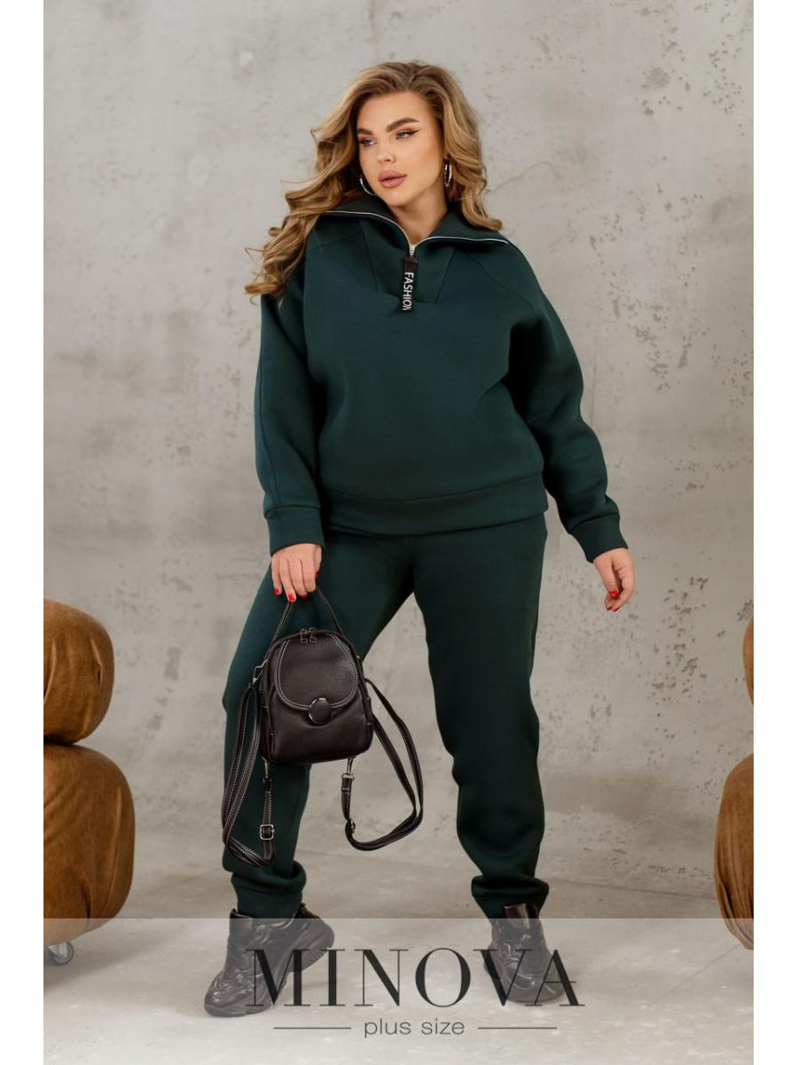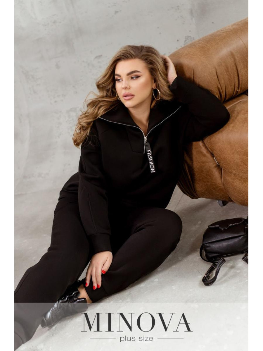 Спортивний костюм із трьохнитки на флісі, забезпечує ідеальне поєднання тепла та комфорту в прохолодну погоду. Худі має зручну змійку і високу горловину, що ефективно захищає шию від холоду. Довгі рукави з манжетами забезпечують комфортну посадку та зберігають тепло. Штани з високою посадкою на еластичній гумці підкреслюють фігуру та забезпечують максимальну свободу рухів. Манжети внизу штанів додають стильного вигляду та додаткового тепла. Бокові кишені роблять костюм практичним і зручним для щоденного носіння або активного відпочинку. На моделі представлений розмір 50-52