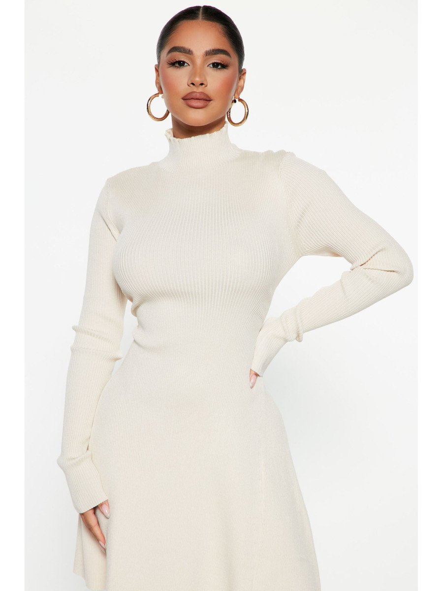 Затишна та стильна светр-сукня "Flirty And Fun" – ідеальний вибір для прохолодних днів. Довгі рукави та елегантний комір-стійка створюють витончений образ, а силует "fit and flare" підкреслює вашу жіночність. М'яка, еластична тканина дарує неперевершений комфорт, роблячи цю сукню вашим улюбленим предметом гардеробу.