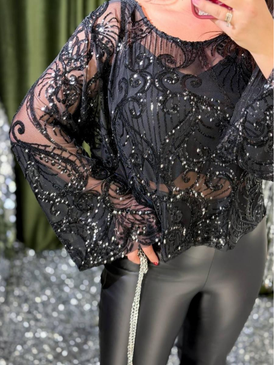 Кофточка Арт Матеріал: сітка з вишитим візерунком з паєток. Підкладка: щільний, гарної розтяжності трикотаж. Довжина кофточки 51 см, знімний топ на бретелях. довжиною 42 см. 42-46: ОГ 78-96 см 48-52- ОГ 98-114 54-58- ОГ 114 -128