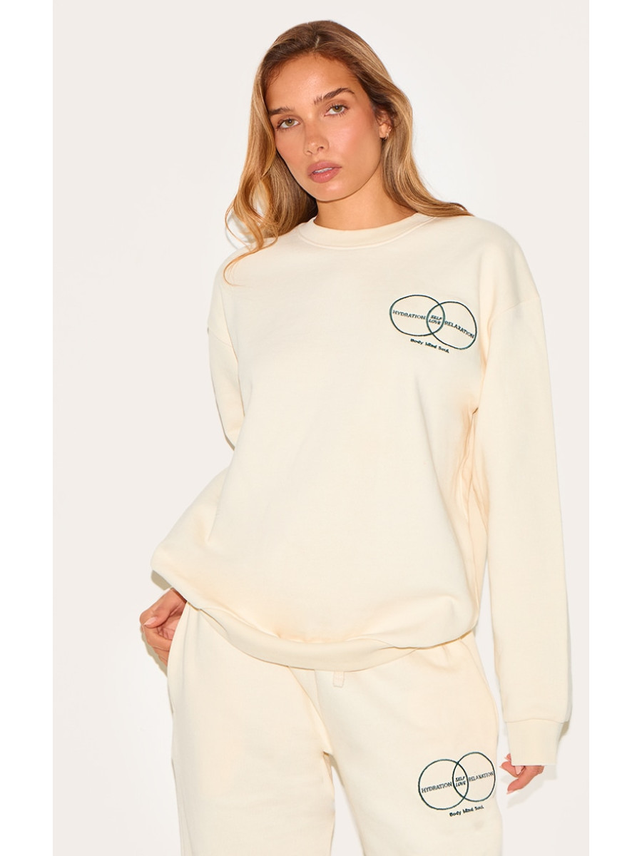 Кремове коло оздоровлення преміум -друк негабаритна толстовка