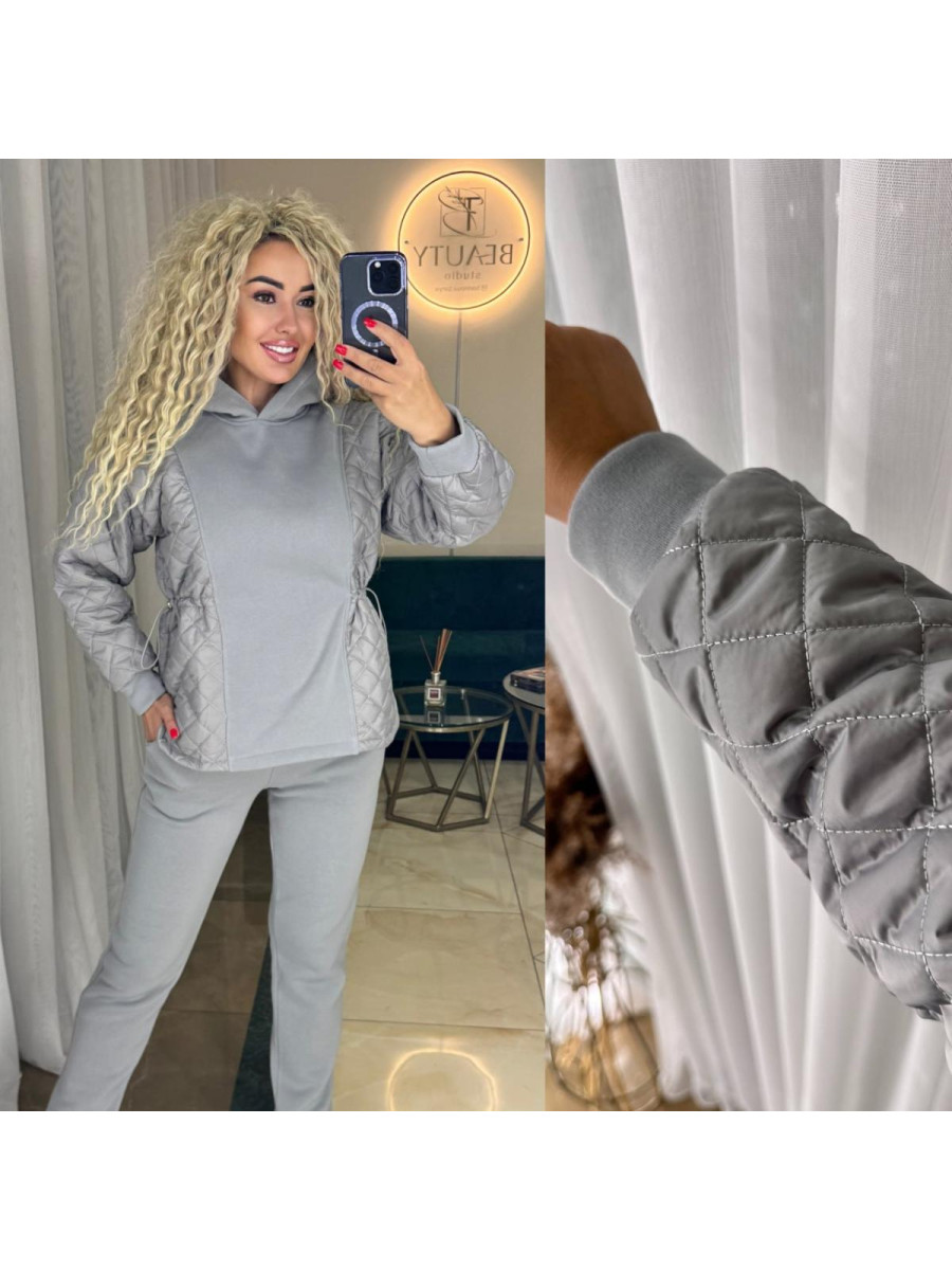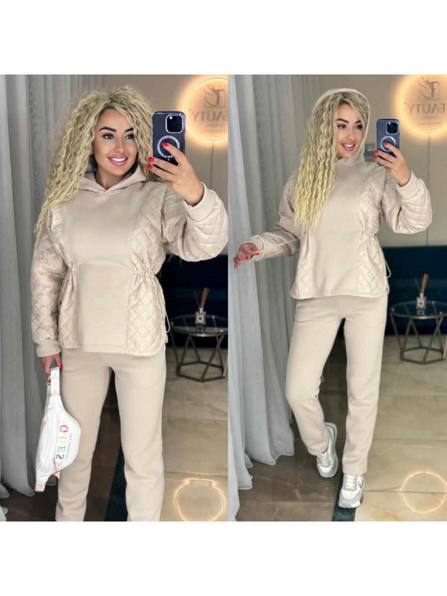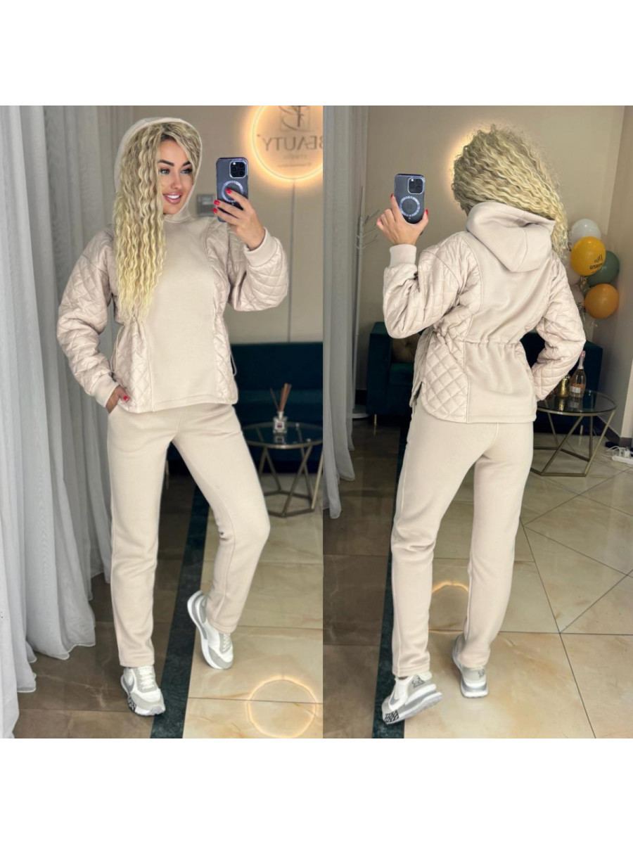 Розміри: S, М, L, XL, 2XL Тканина: тринитка гарної якості ,плащівка+100 силікон Опис: Затишний та теплий спортивний костюм із трикотажу на флісі та стьобаної плащівки. Комфортний крій, кофта на кулісці( в середині підклад) з капюшоном.Штани прямі з кишенями. (Заміри вказані на параметри)