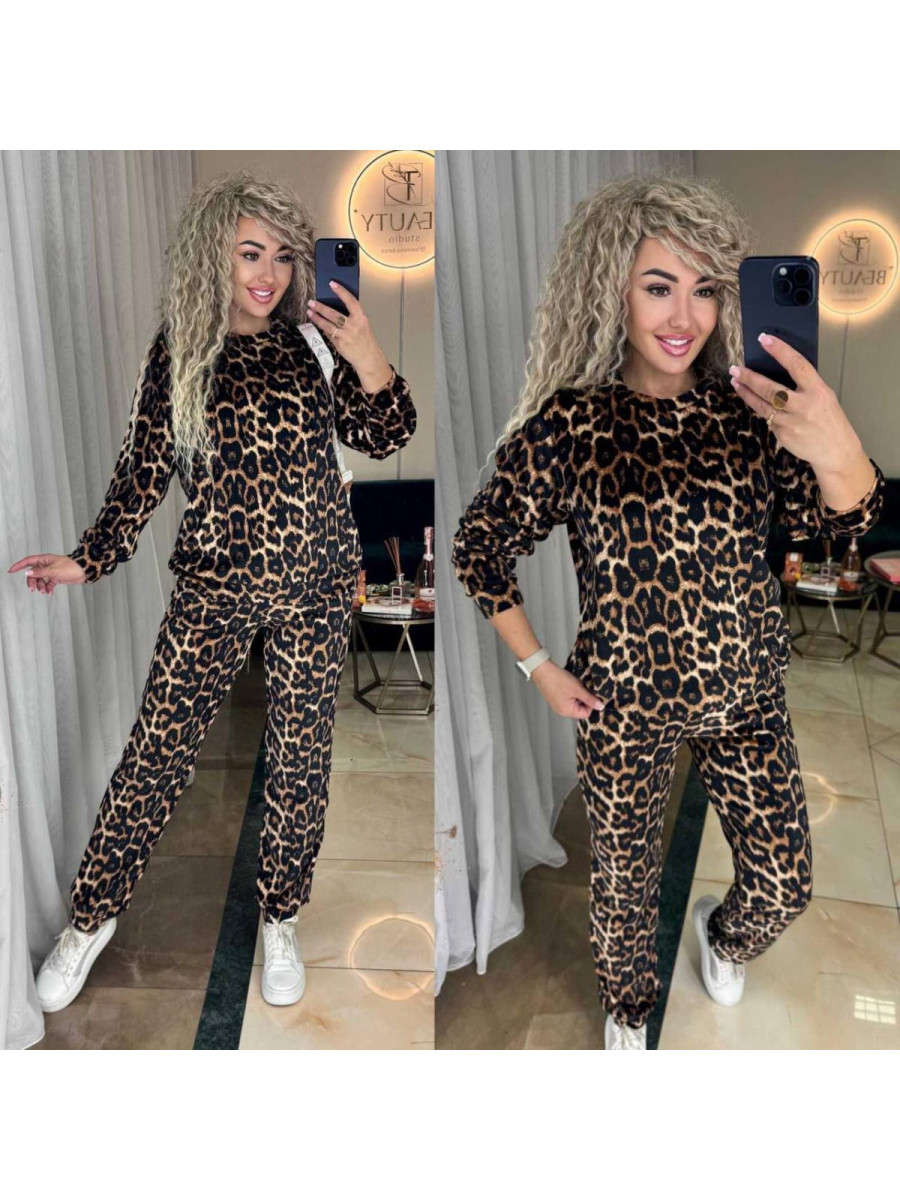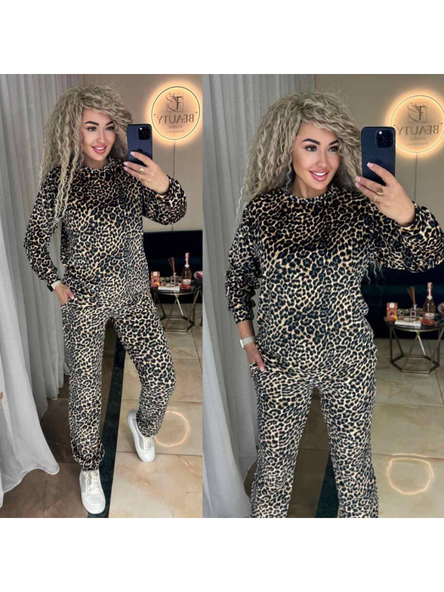 Суперстильний костюм в леопардовому принті В комплекті кофта та штани:кофта з довгими рукавами та на манжеті, штани з боковими кишенями, знизу на манжеті. Модель Розміри (42-44),(46-48),(50-52)