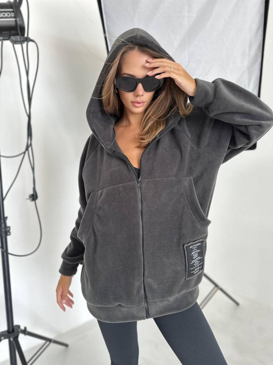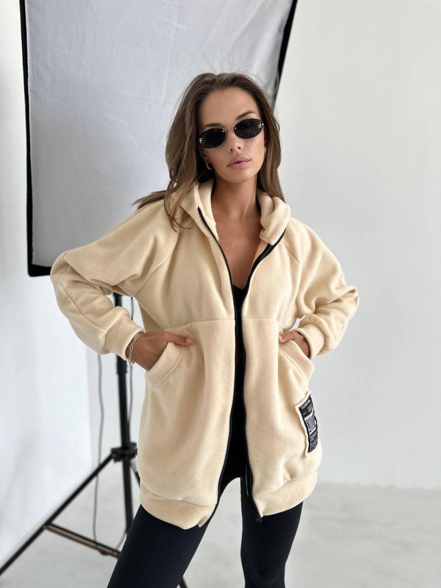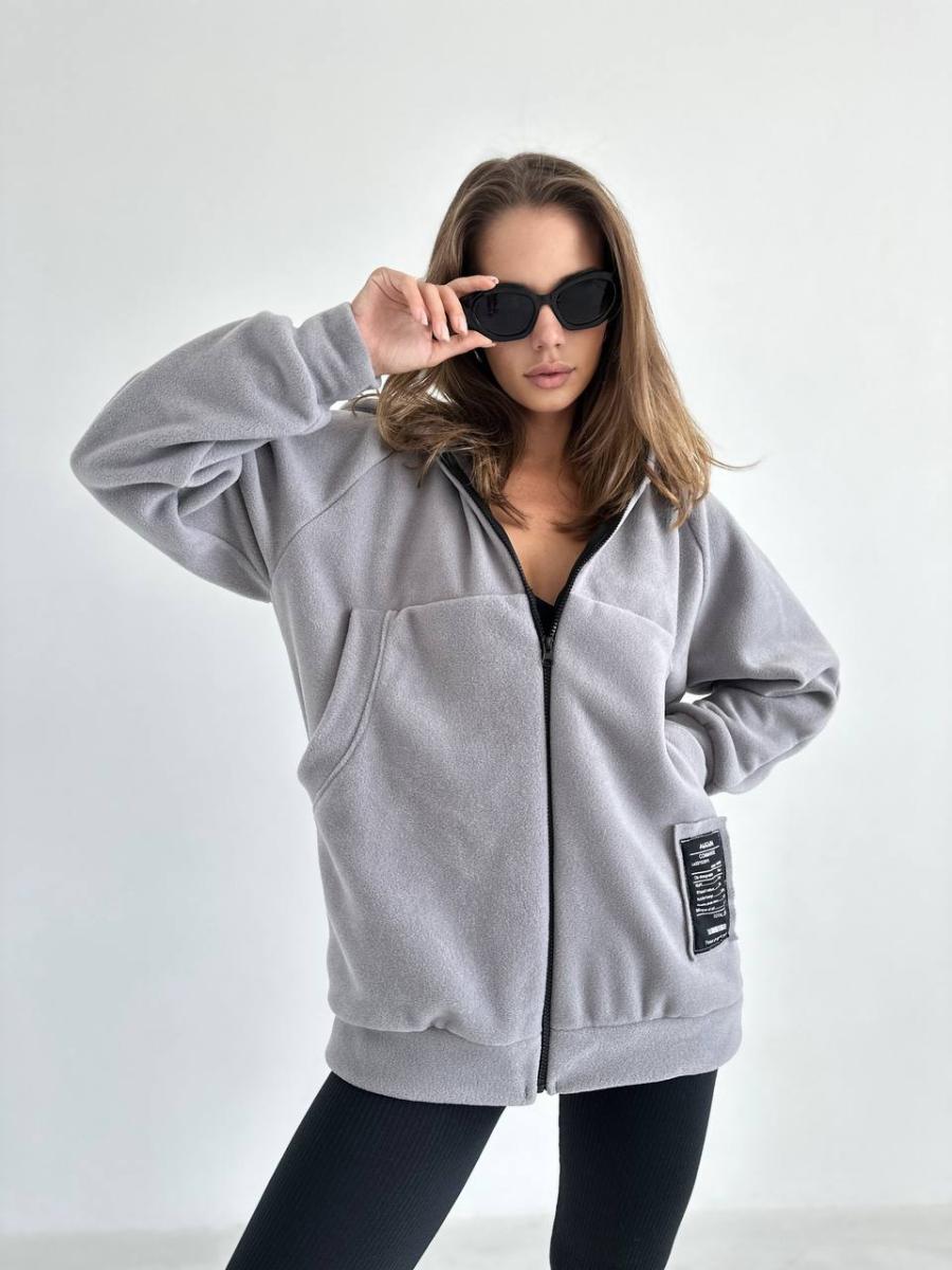 Осіння кофта на змійці та з капюшоном ▫️Модель: ▫️Тканина: ❗️Турецький Полор Фліс, (щільність 280) ▫️Розмір: універсальний 42-46 ◽️Колір: бежевий, сірий, графіт малина. Флісовий оверсайз батнік, дуже мʼякий і приємний до тіла.