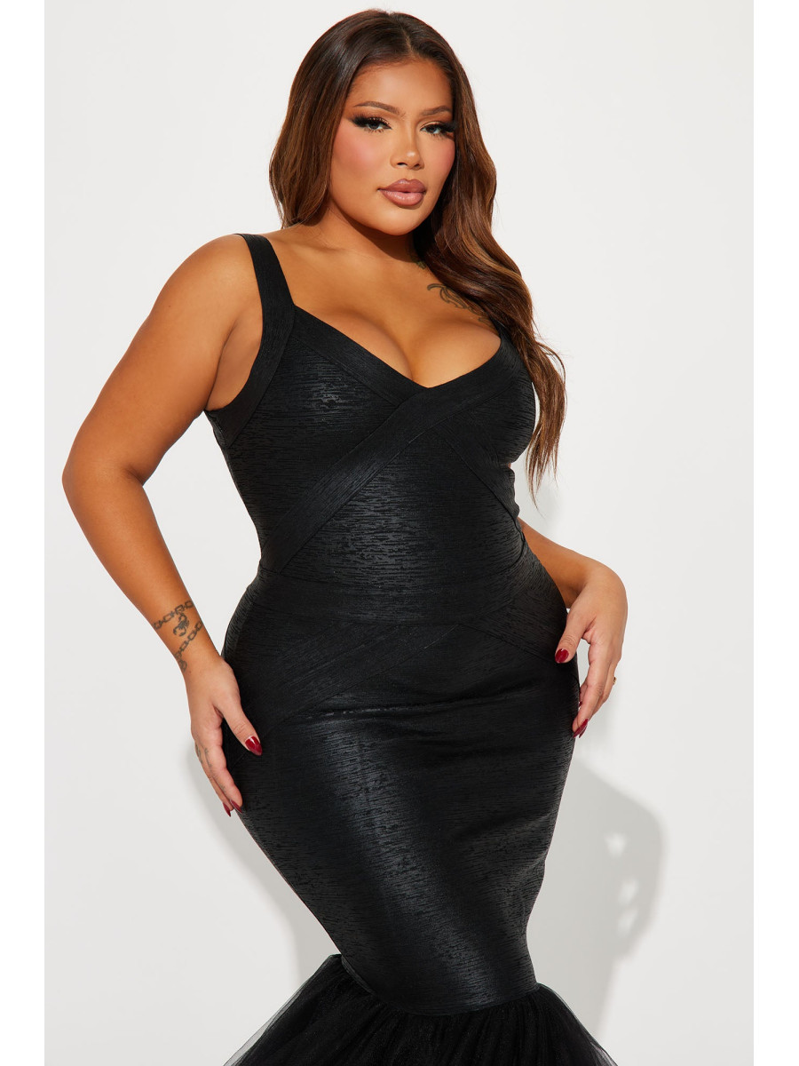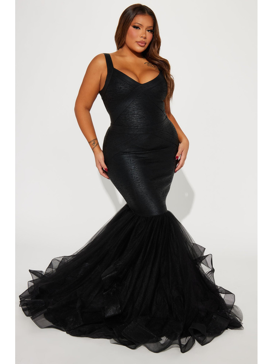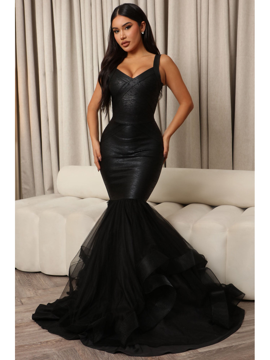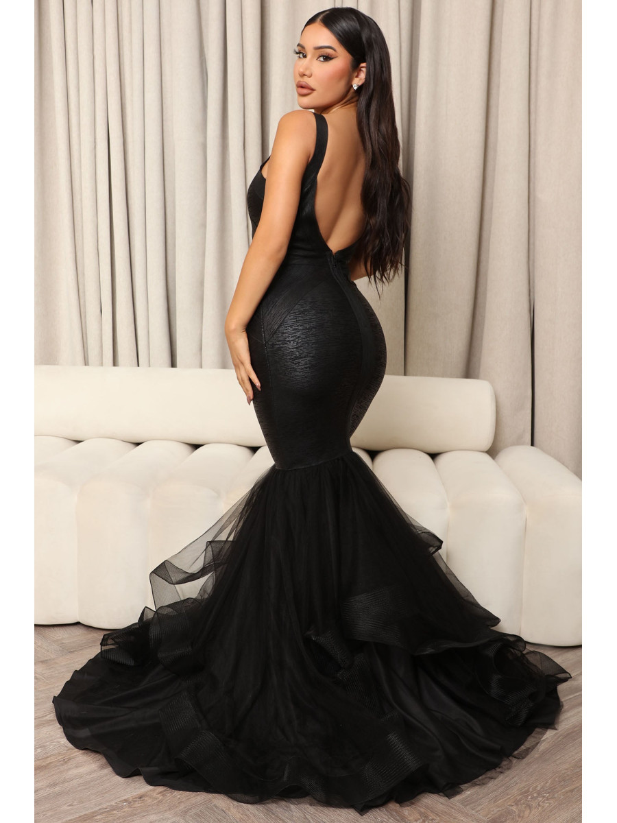 Відкрийте для себе неперевершену елегантність з сукнею "Mermaid" у стилі "бандаж". Без рукавів та з глибоким V-подібним вирізом, вона ідеально підкреслить вашу фігуру. Дизайн "русалка" з об'ємним тюлем та хвилястим подолом додає образу драматизму та вишуканості. Прихована блискавка ззаду забезпечує зручність, а поєднання еластичної тканини з контрастними вставками створює унікальний силует. Елегантна обробка подолу додає завершального штриху.