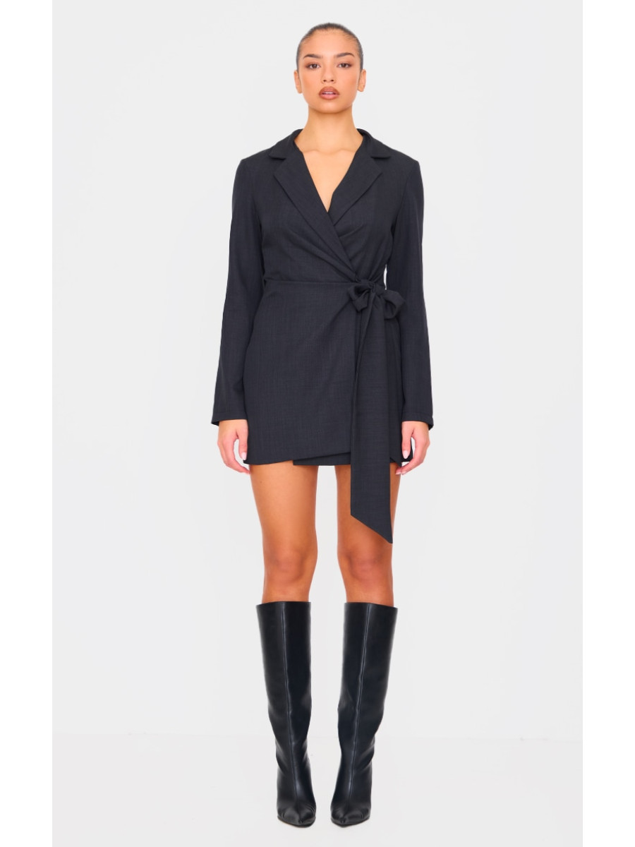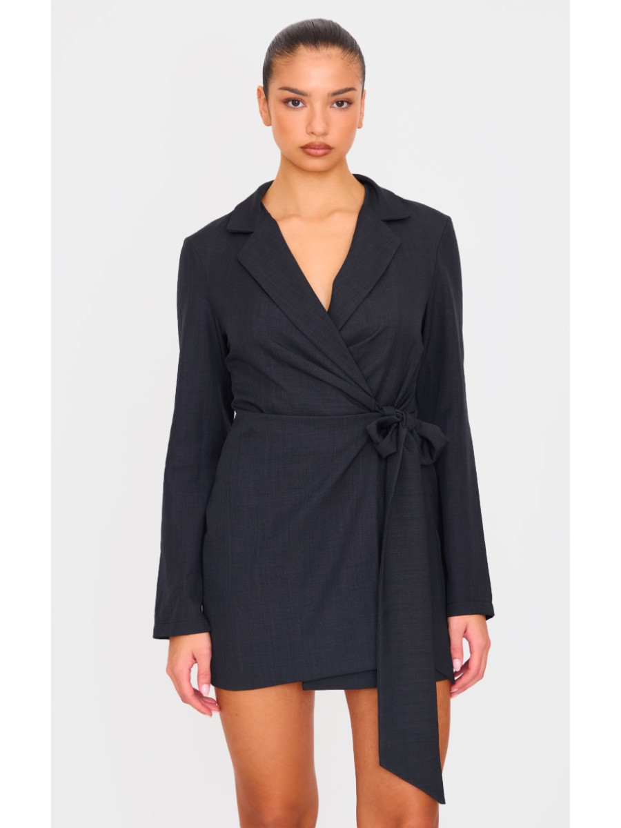 Чорна плетена сукня-піджак із зав’язкою та зав’язкою