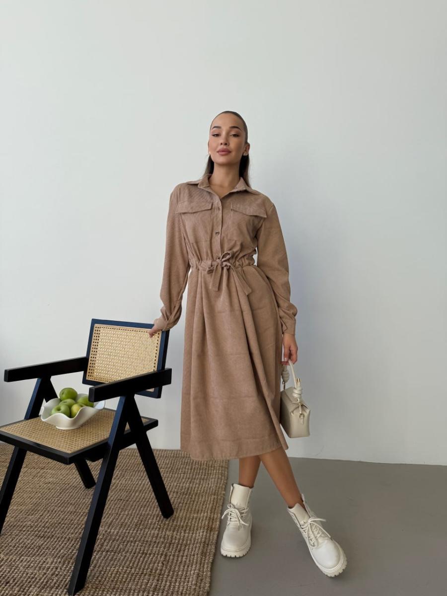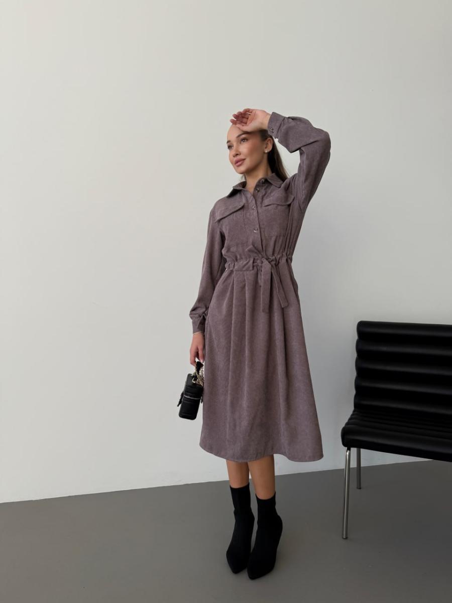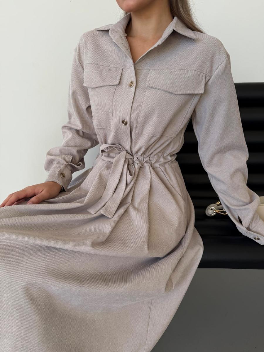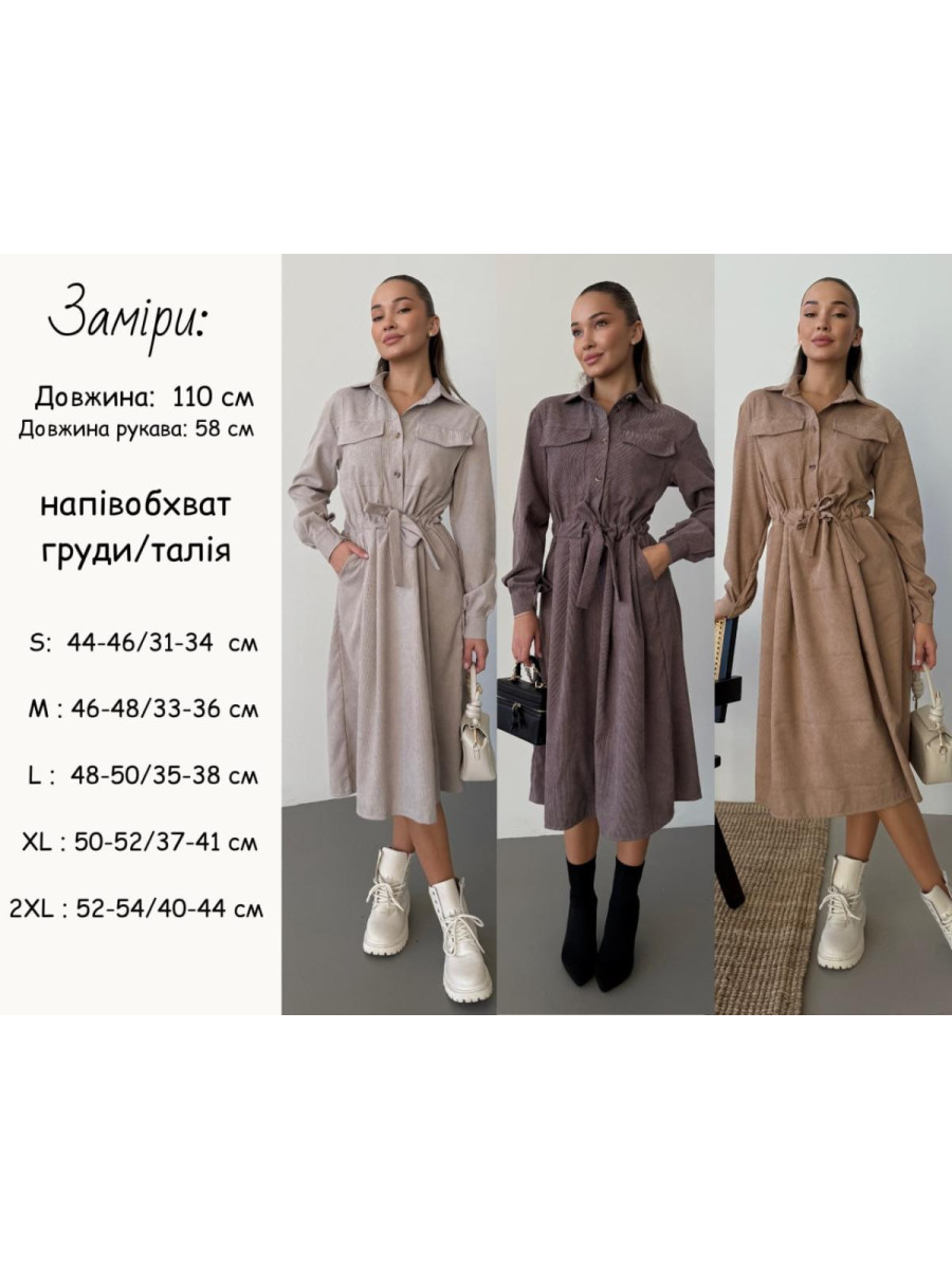 Опис : Затишна сукня-сорочка з мікро-вельвету з нагрудними карманами в трендових кольорах. Модель міді довжини ,застібається на гудзики, талія без резинки, регулюється поясом, рукава на манжетах. (Заміри вказані на параметри)