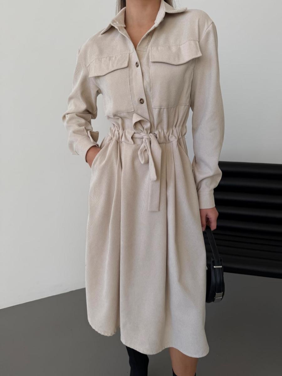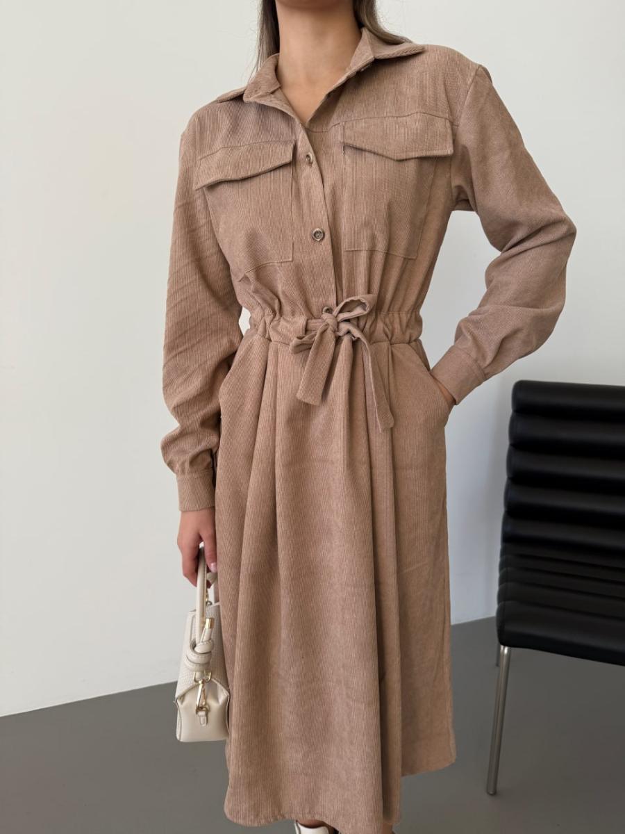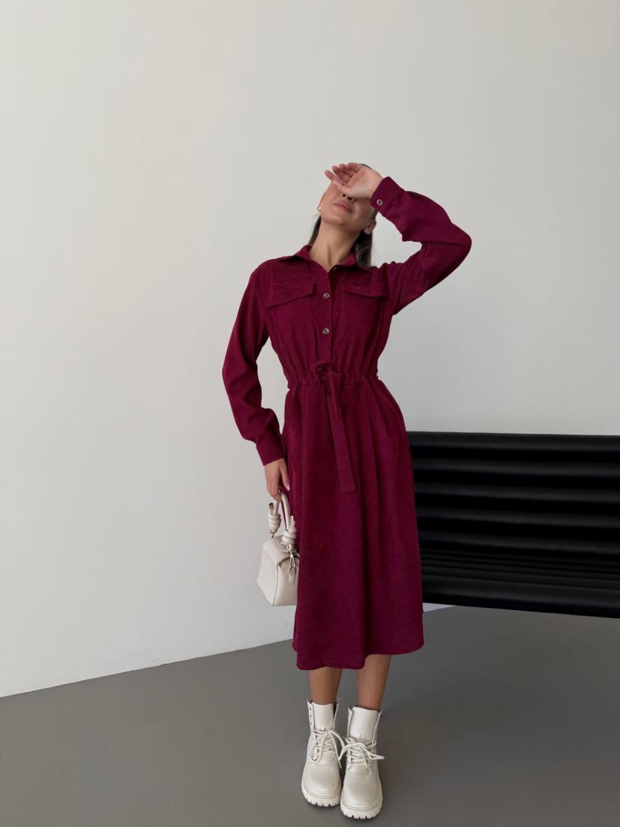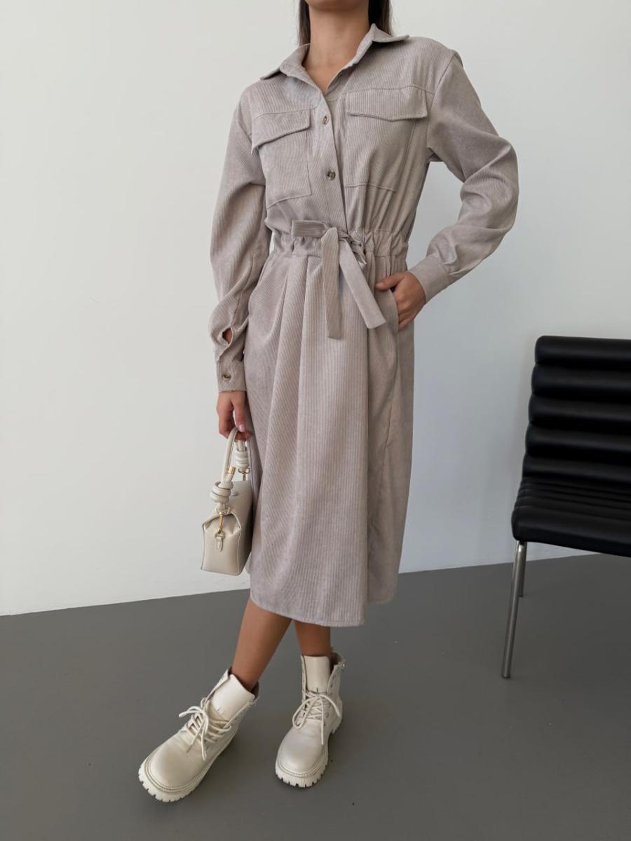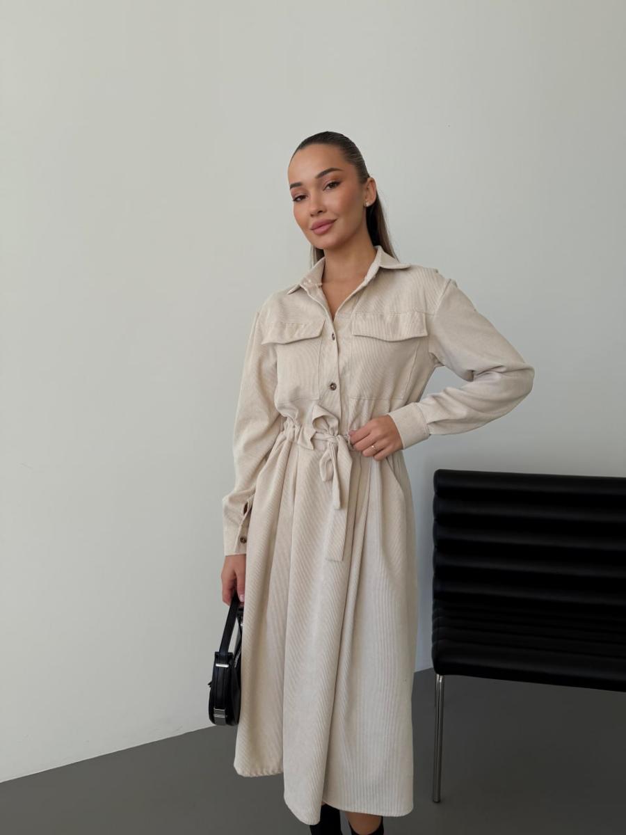 Опис : Затишна сукня-сорочка з мікро-вельвету з нагрудними карманами в трендових кольорах. Модель міді довжини ,застібається на гудзики, талія без резинки, регулюється поясом, рукава на манжетах. (Заміри вказані на параметри)