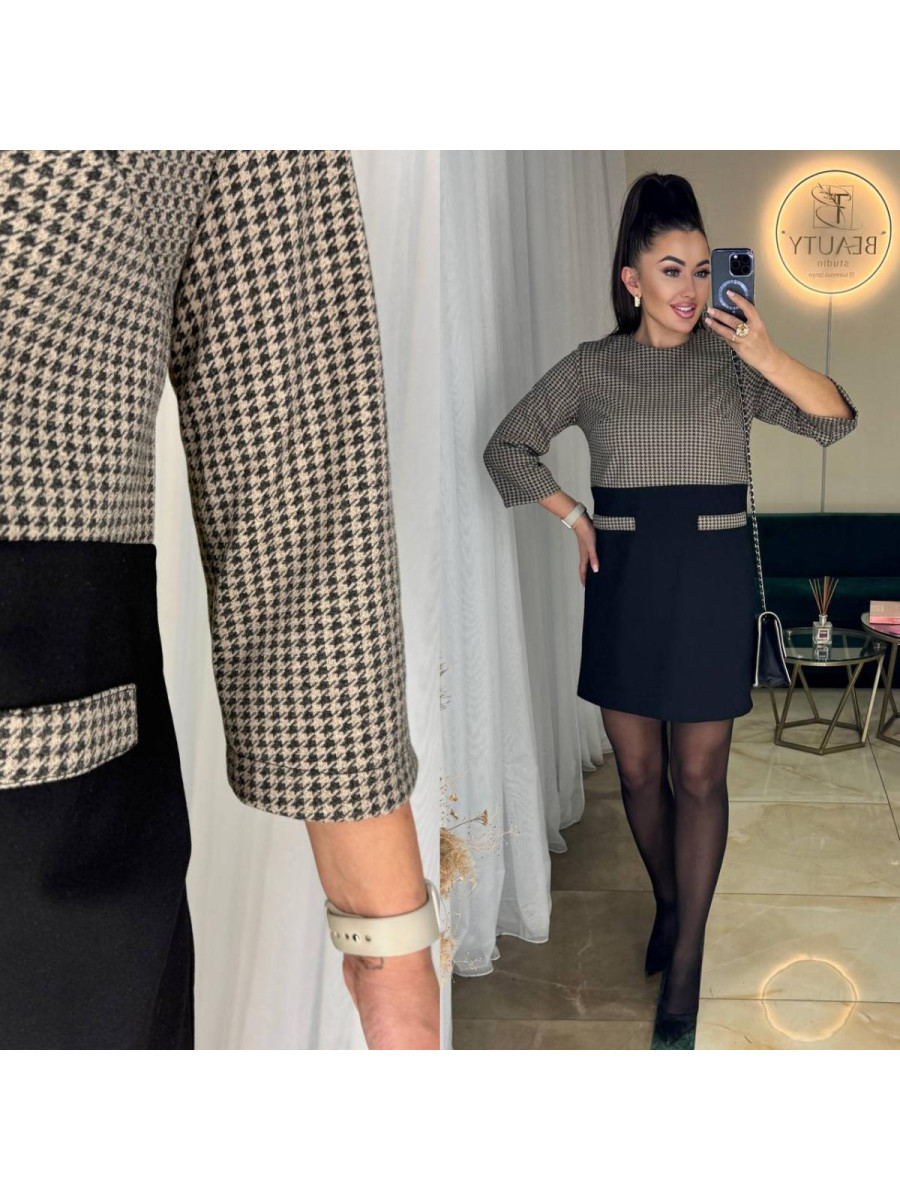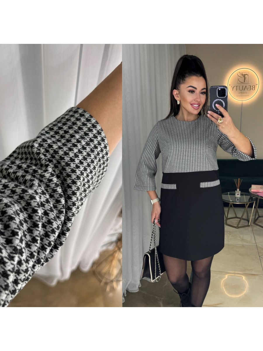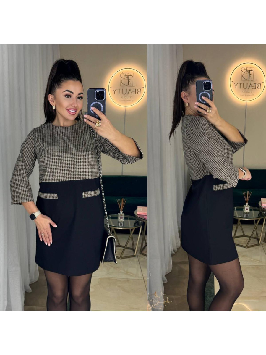 Плаття Арт Тканина трикотаж вовна принт, трикотаж «Алекс» однотон Колір шоколад, сірий Розмір 42-44,46-48,50-52 Плаття вільного крою, рукав 3/4, кишені декоративні. Тканина тягнеться