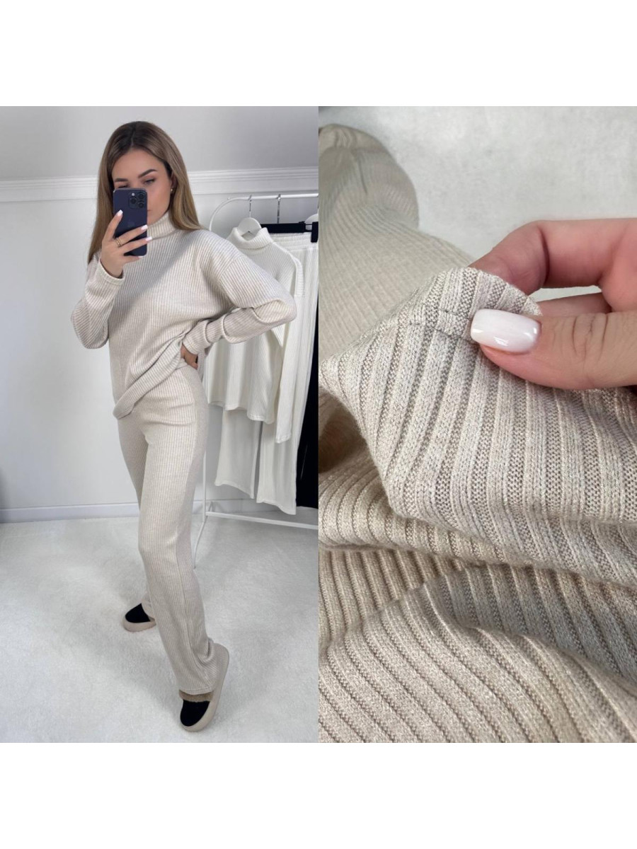 Костюм Арт Тканина трикотаж рубчик Колір чорний, шоколадний, світлий бежевий, молочний Розмір 42-44,46-48,50-52 Костюм штани вільного крою, талія на резинці. Кофта вільного крою, горловина хомут Тканина дуже тягнеться, приємна до тіла