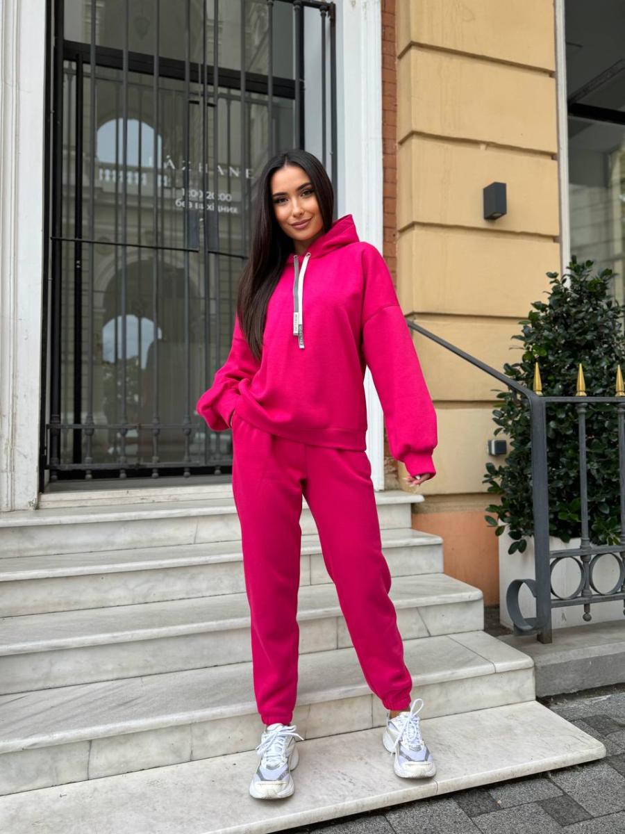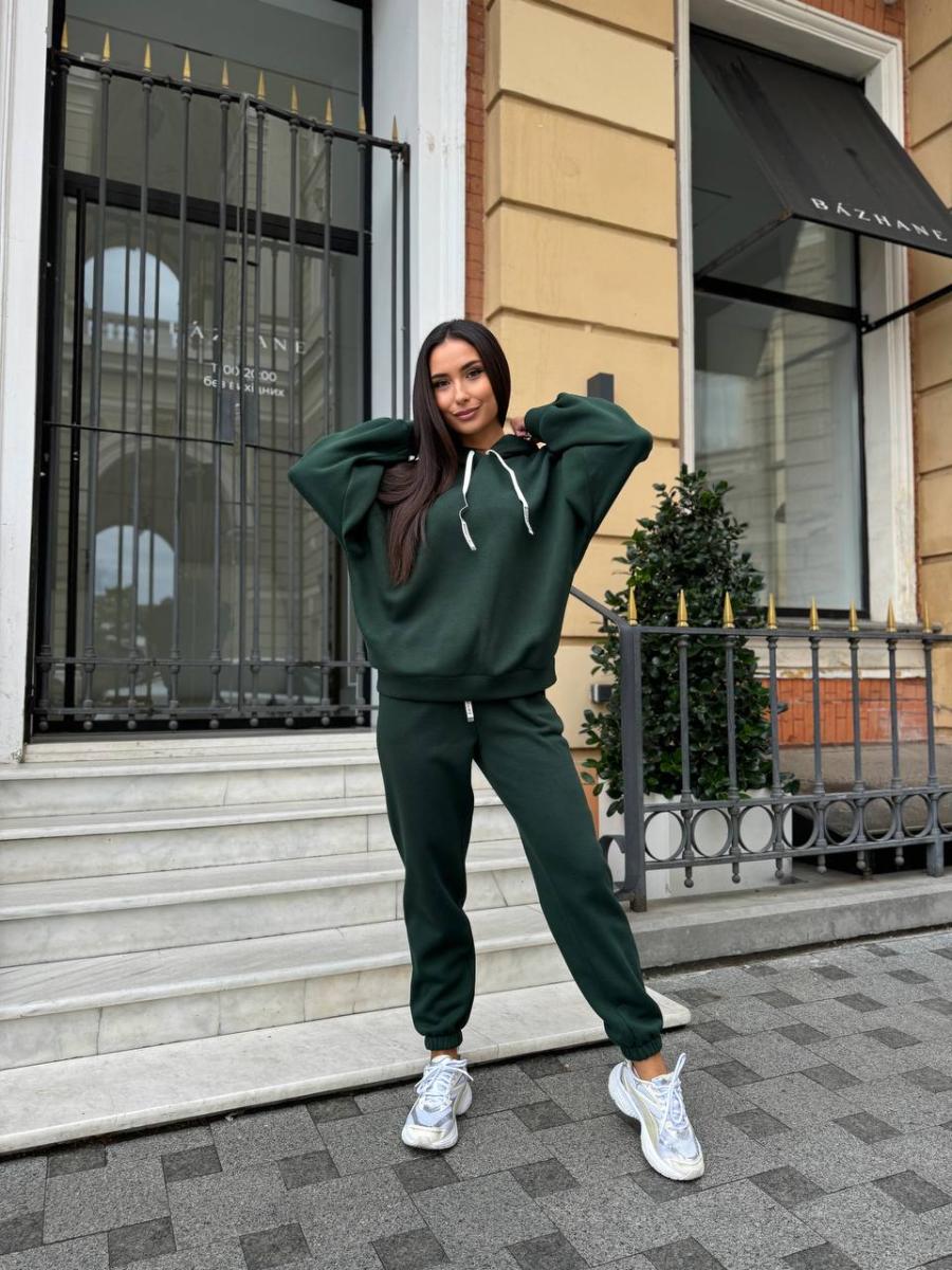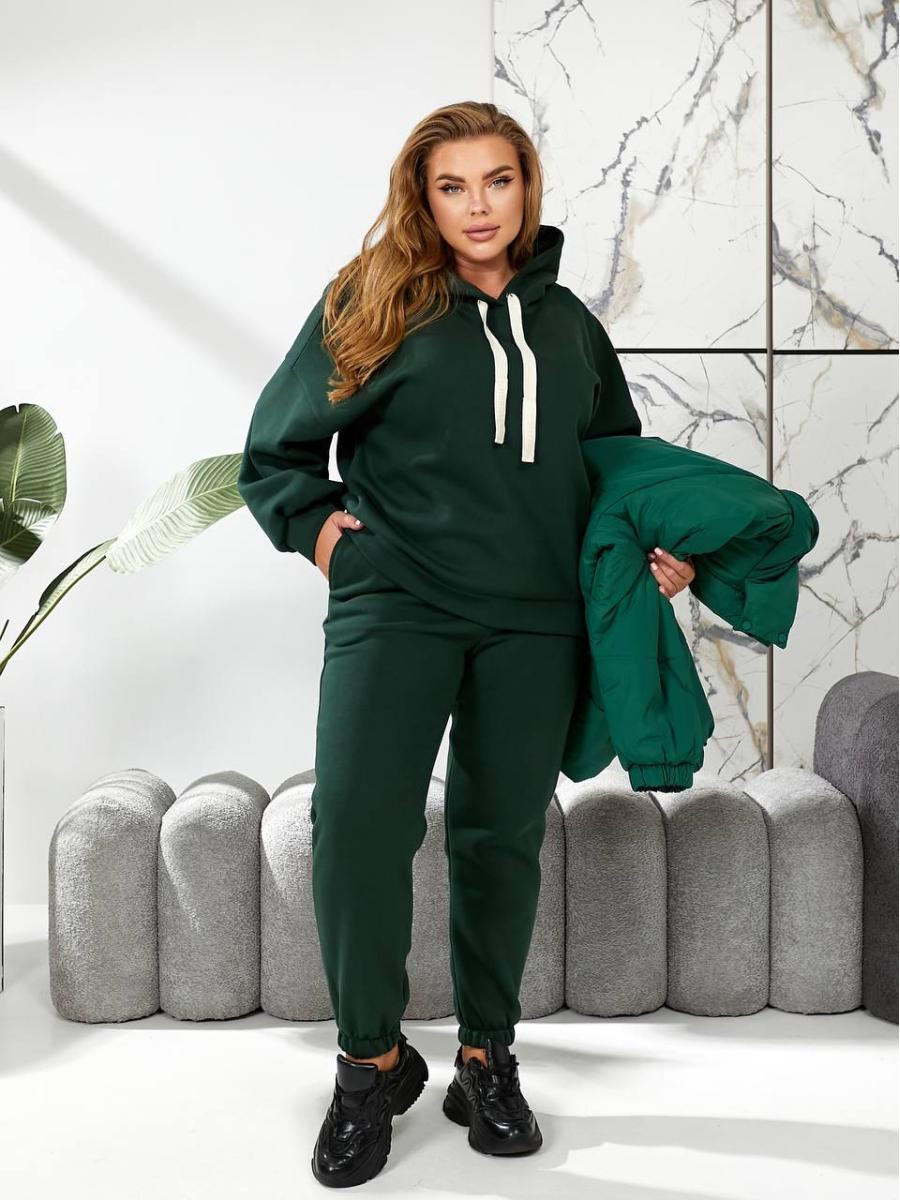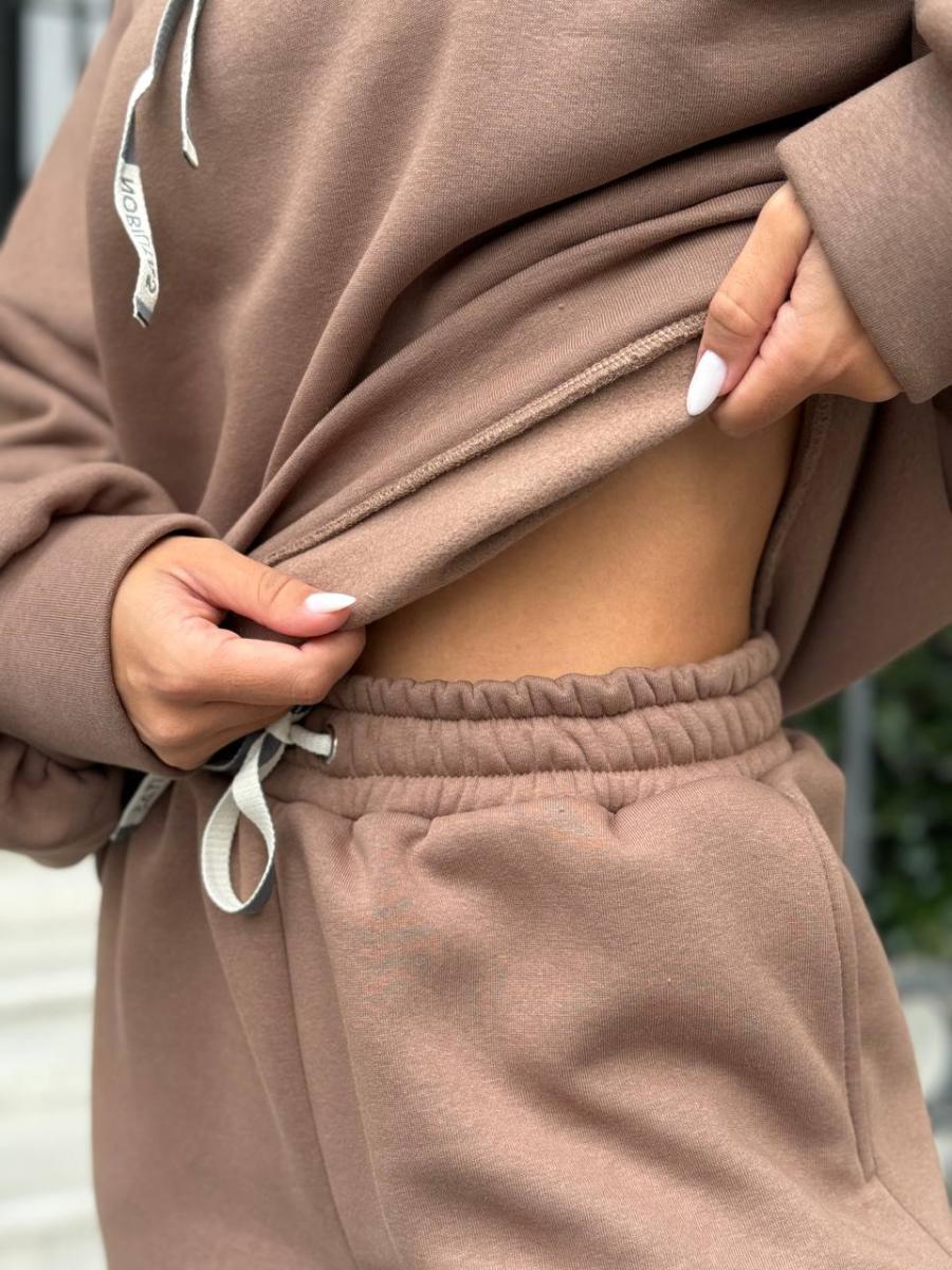 Костюм спортивний Турецька тканина + рукавички( без пальців) Модель: Тканина: Турецька тринитка на флісі( не скатується) дуже тепла Розміри : 42-44, 46-48, 50-52, 54-56 Тканина: Турецька тринитка на флісі( не скатується) дуже тепла плащівка водовідштовхувальна Повсякденний костюм , кофта з капюшоном вільного крою . Штани з карманами на резинці . . Кольори: чорний, рожевий, моко, шоколадний ,зелений , сірий,молочний