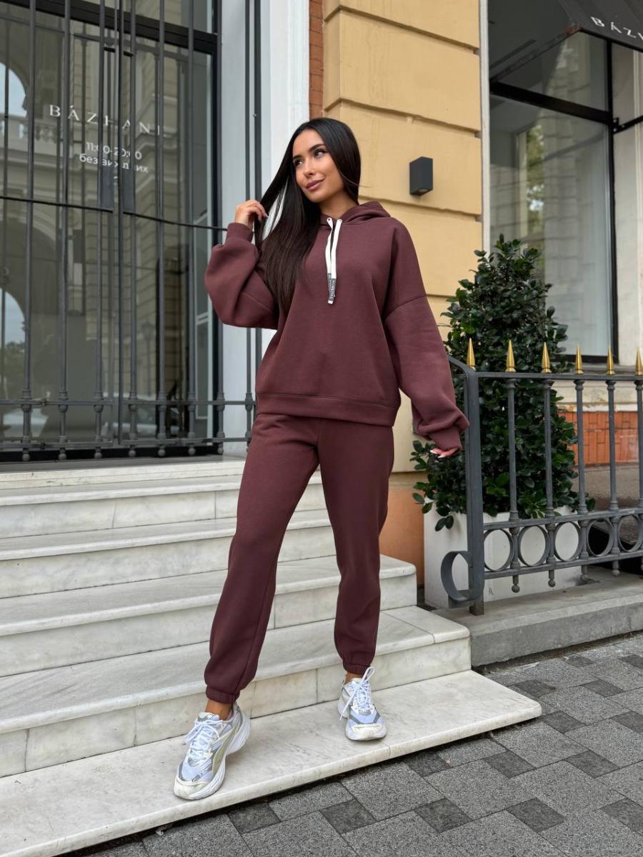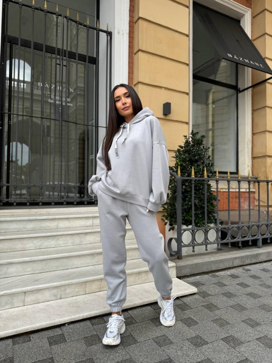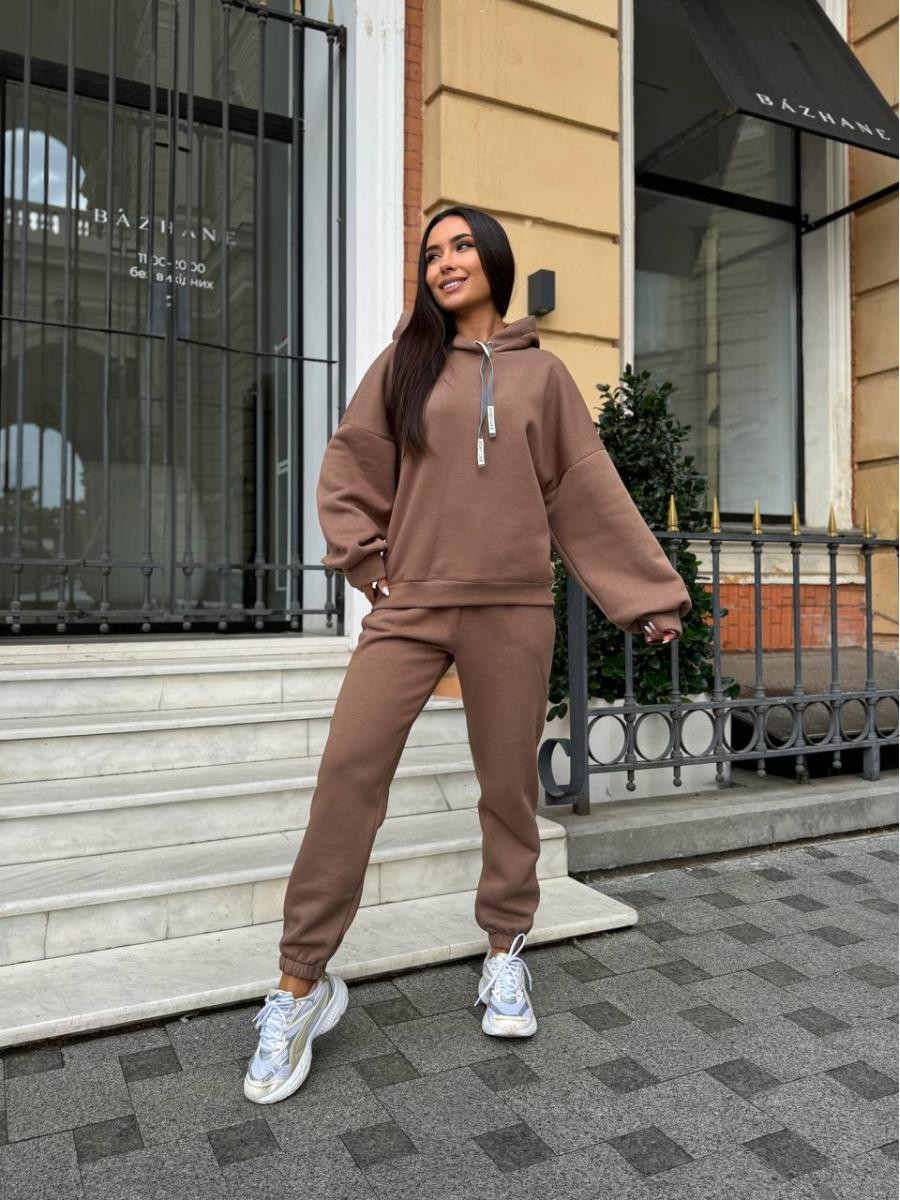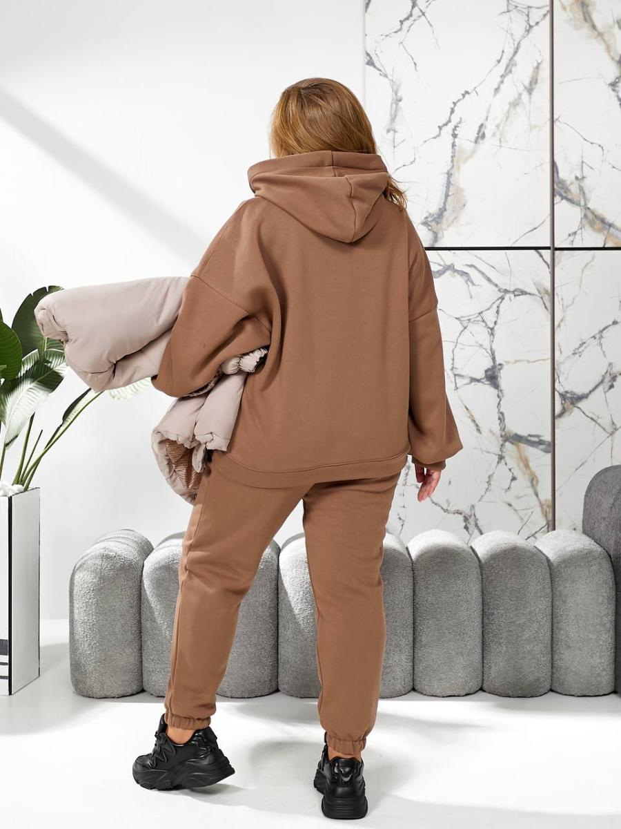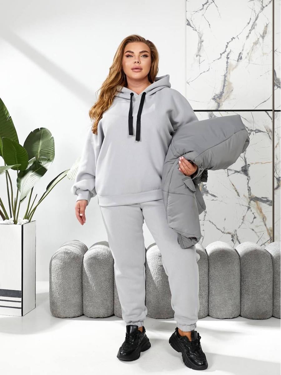 Костюм спортивний Турецька тканина + рукавички( без пальців) Модель: Тканина: Турецька тринитка на флісі( не скатується) дуже тепла Розміри : 42-44, 46-48, 50-52, 54-56 Тканина: Турецька тринитка на флісі( не скатується) дуже тепла плащівка водовідштовхувальна Повсякденний костюм , кофта з капюшоном вільного крою . Штани з карманами на резинці . . Кольори: чорний, рожевий, моко, шоколадний ,зелений , сірий,молочний