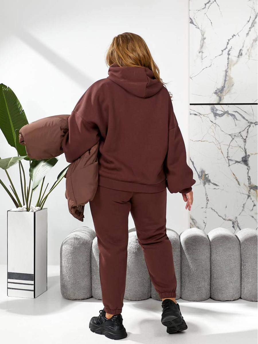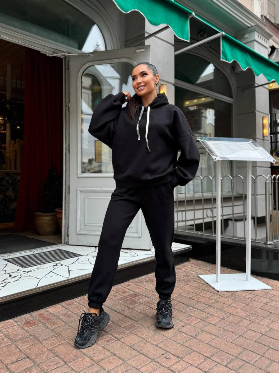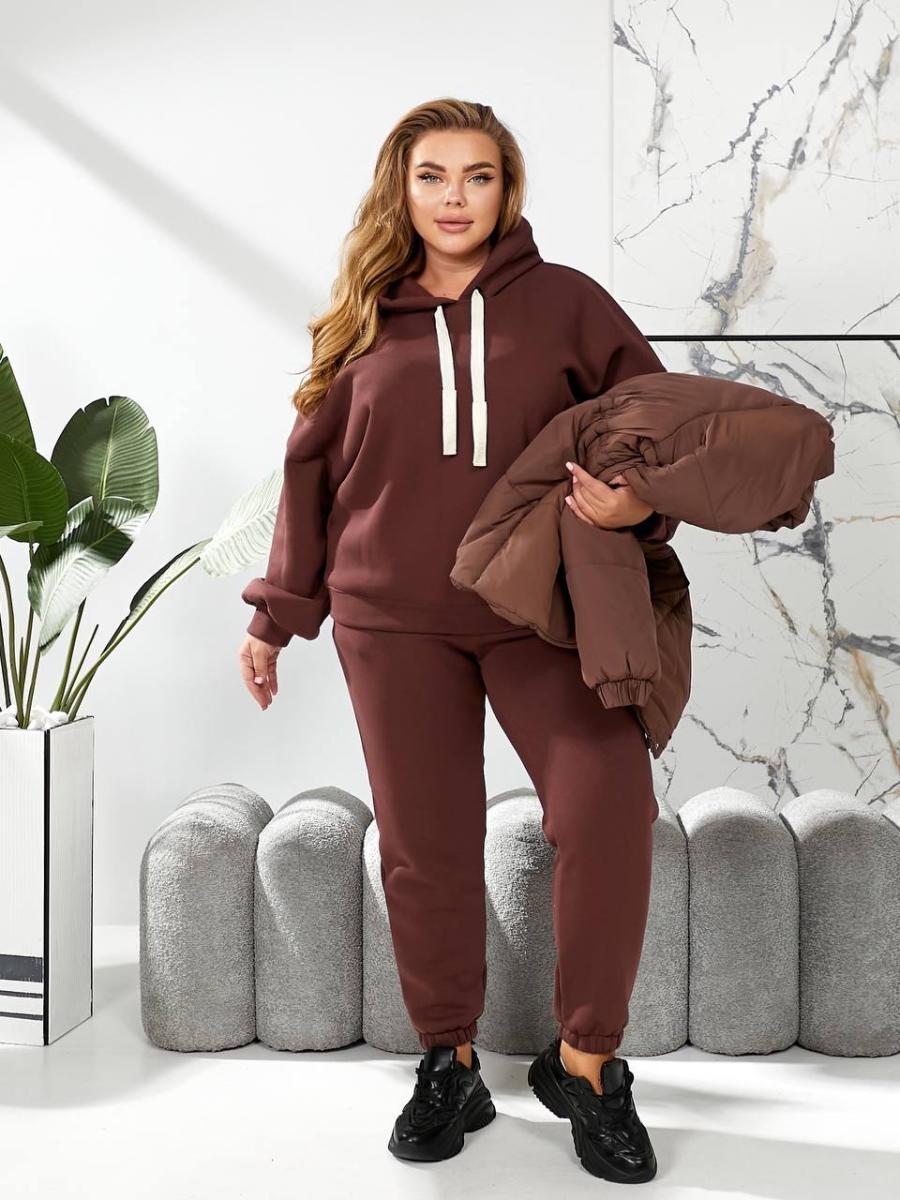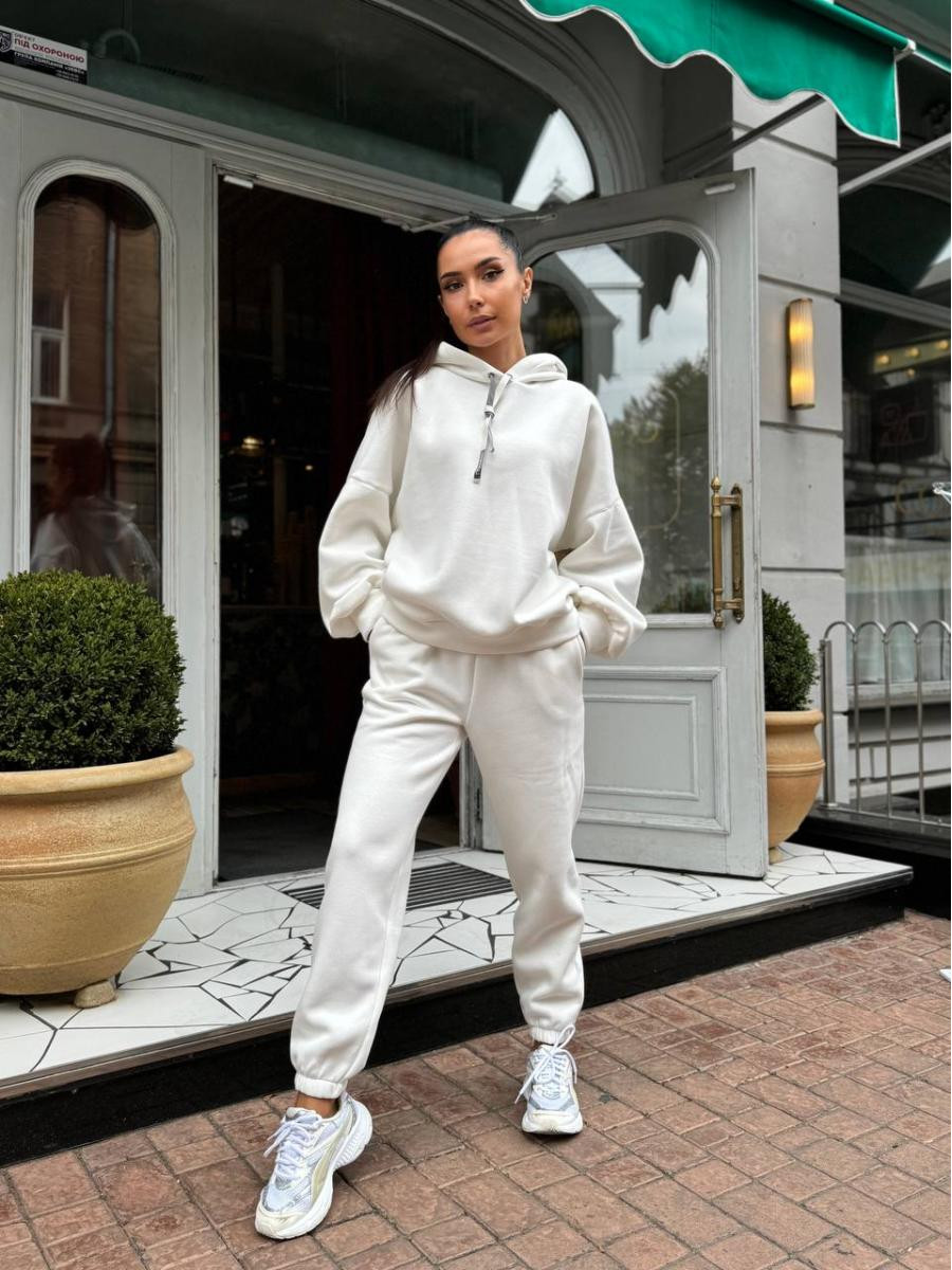 Костюм спортивний Турецька тканина + рукавички( без пальців) Модель: Тканина: Турецька тринитка на флісі( не скатується) дуже тепла Розміри : 42-44, 46-48, 50-52, 54-56 Тканина: Турецька тринитка на флісі( не скатується) дуже тепла плащівка водовідштовхувальна Повсякденний костюм , кофта з капюшоном вільного крою . Штани з карманами на резинці . . Кольори: чорний, рожевий, моко, шоколадний ,зелений , сірий,молочний