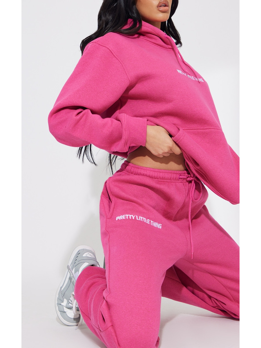 Яскраво-рожеві джоггери з вишивкою PRETTYLITTLETHING