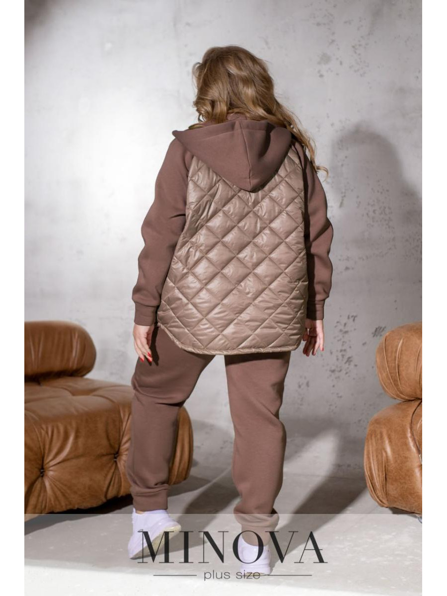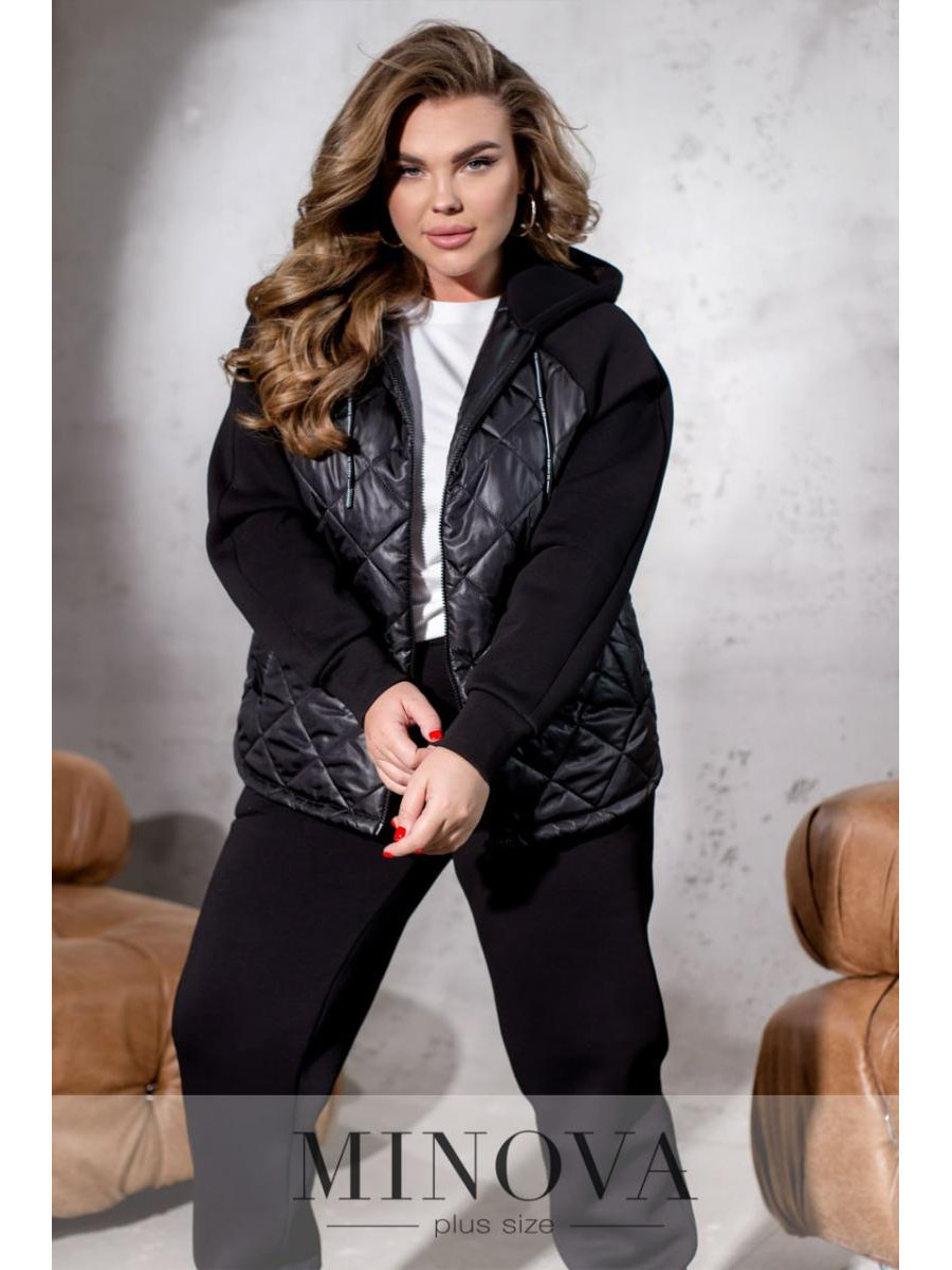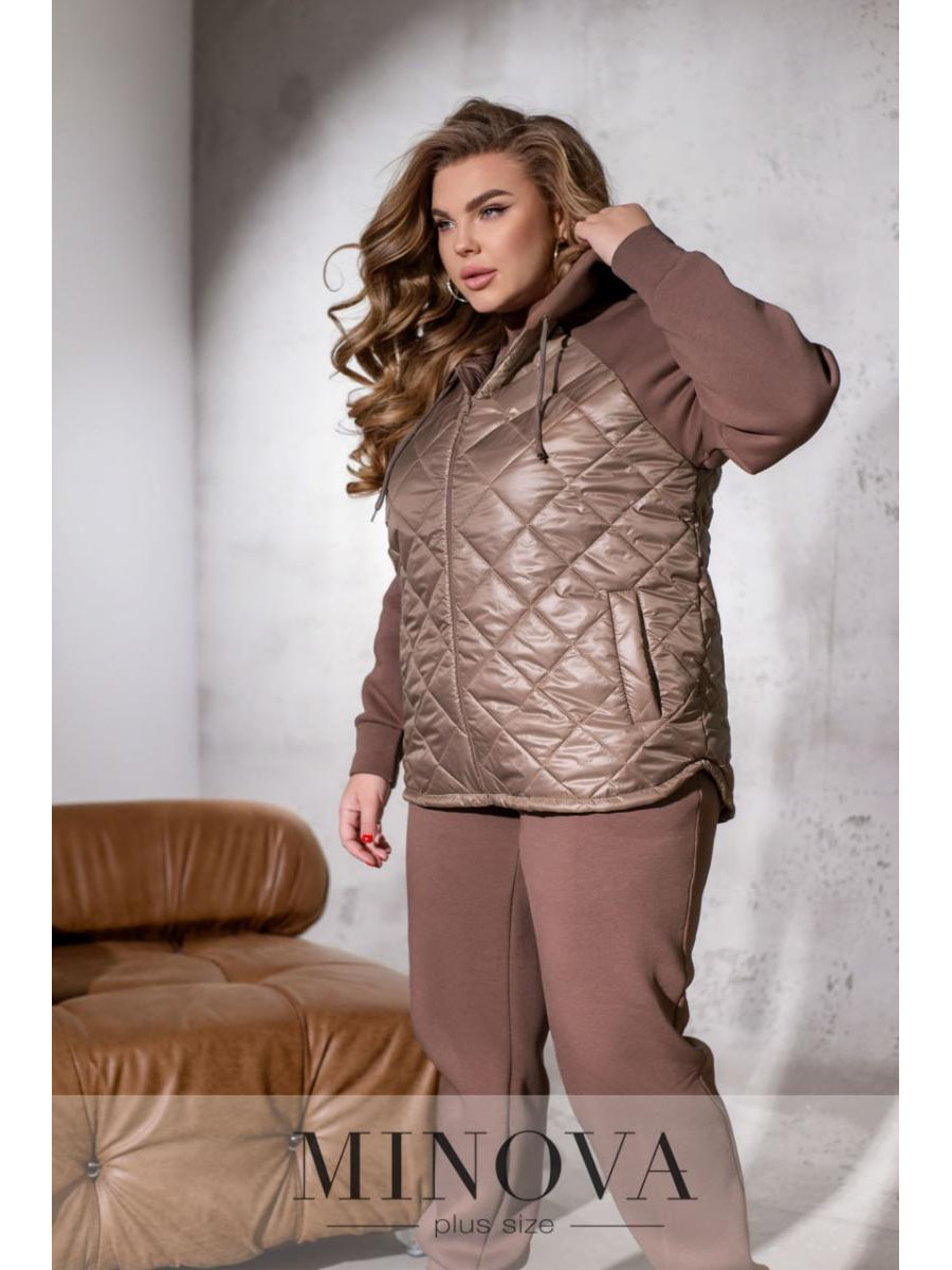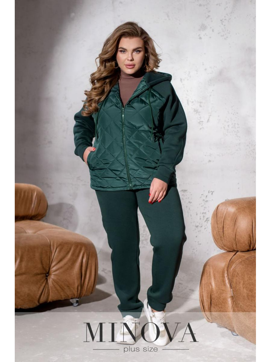 Спортивний костюм із кофтою на змійці, пошитий із поєднання тканин «стежка» та трьохнитки, створений для комфорту та стилю. Кофта оснащена капюшоном зі шнурком, що проходить через люверси, забезпечуючи захист і регулювання. Спереду розташовані врізні кишені для зручності. Рукава з трьохнитки з манжетами забезпечують комфортну посадку. Штани з високою посадкою на еластичній гумці з боковими кишенями і манжетами внизу додають функціональності та забезпечують тепло. Ідеальний вибір для активного відпочинку чи повсякденних занять. На моделі представлений розмір 50-52