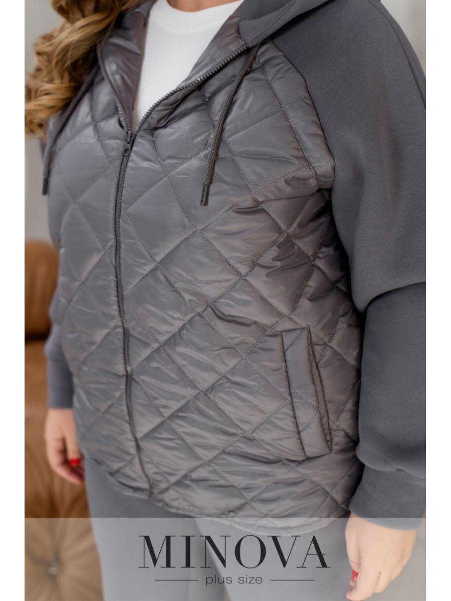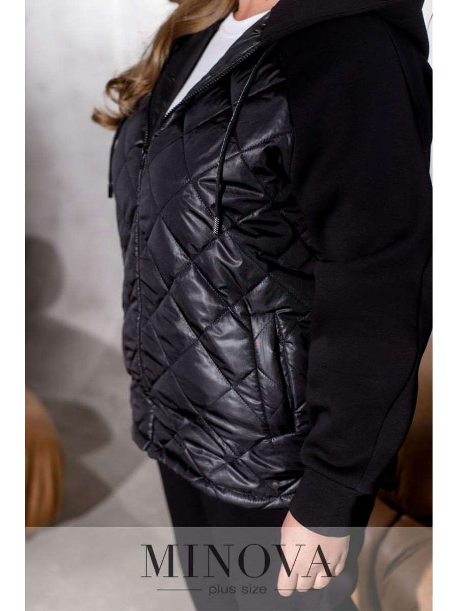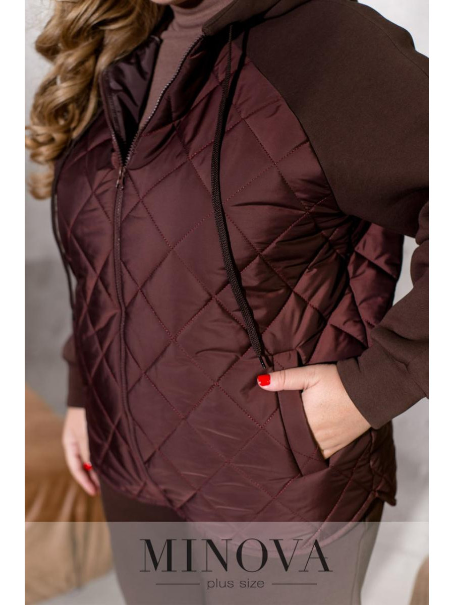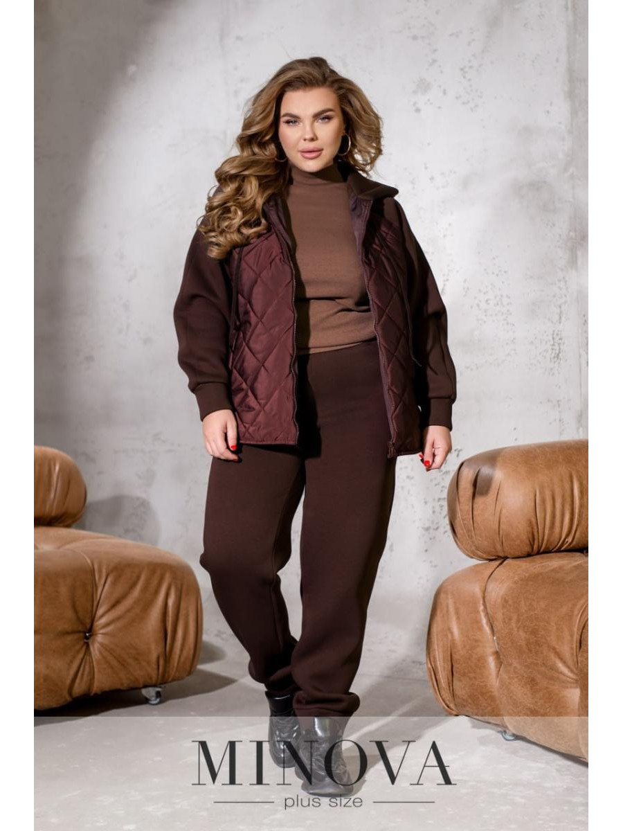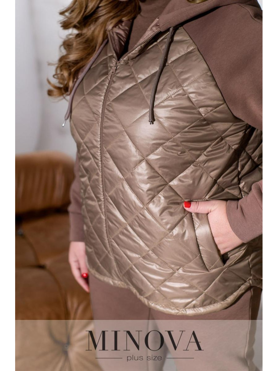 Спортивний костюм із кофтою на змійці, пошитий із поєднання тканин «стежка» та трьохнитки, створений для комфорту та стилю. Кофта оснащена капюшоном зі шнурком, що проходить через люверси, забезпечуючи захист і регулювання. Спереду розташовані врізні кишені для зручності. Рукава з трьохнитки з манжетами забезпечують комфортну посадку. Штани з високою посадкою на еластичній гумці з боковими кишенями і манжетами внизу додають функціональності та забезпечують тепло. Ідеальний вибір для активного відпочинку чи повсякденних занять. На моделі представлений розмір 50-52