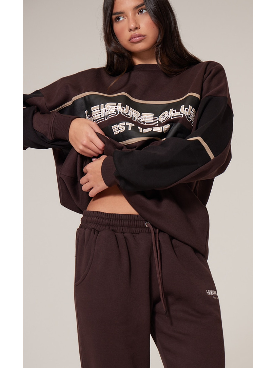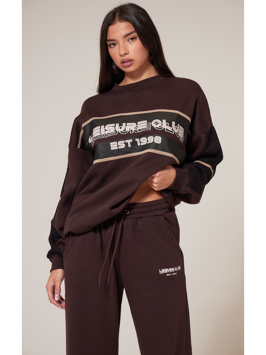 Темно-коричневий світшот із вишивкою клубу відпочинку