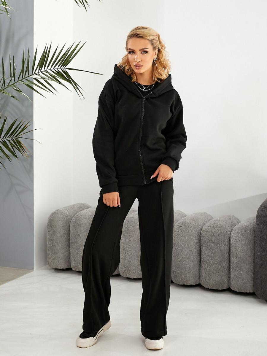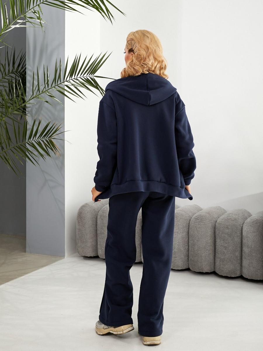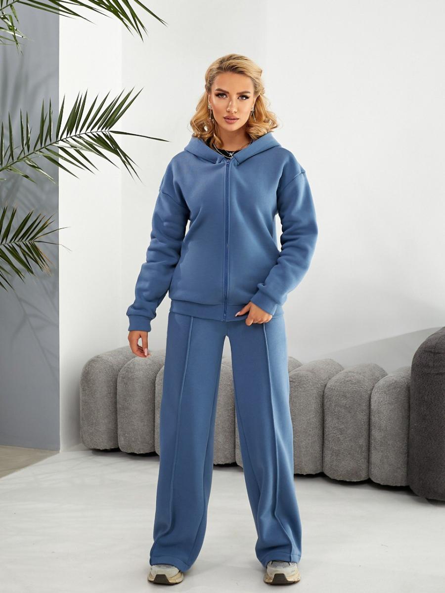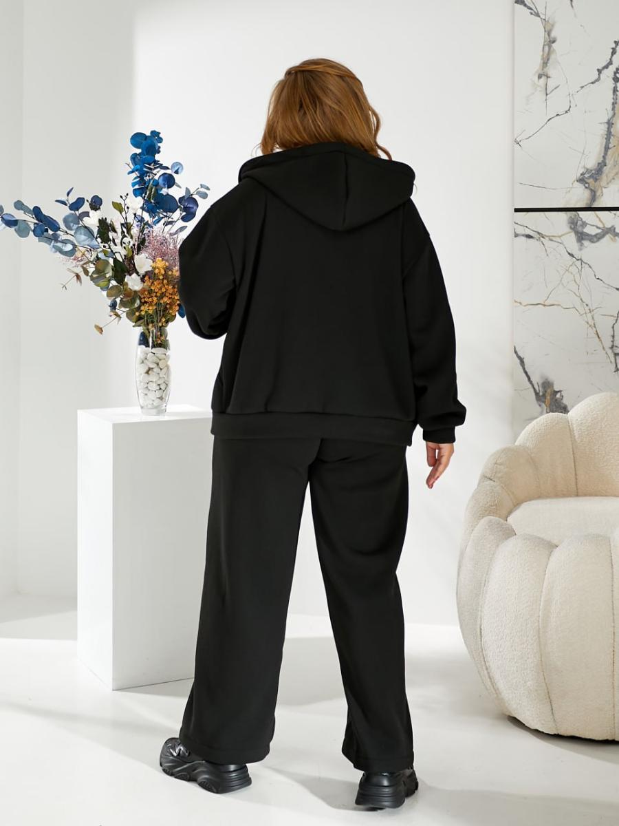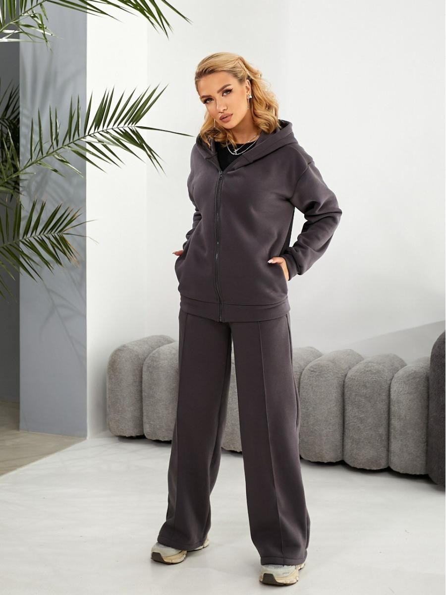 Спортивний костюм модель – 723-5423 Матеріал: тринитка з начісом високої якості Розміри: 42-44, 46-48 — Розміри: 50-52, 54-56 Кольори: чорний, темно-сірий, темно-синій, джинсовий Кофта вільного крою з капюшоном, застібається на блискавку Штани палаццо зі стрілками, 2-і кишені. ВИМІРИ модель 723-5423 42-44: Кофта: ОГ-116см, ОС-96см, довжина – 66см, рукав по внутр.шву — 50см Штани: ОТ-64см-86см, ОС-90см довжина — 107см, по внутр.шву — 78см 46-48: Кофта: ОГ-130см, ОС-106см, довжина – 66см, рукав по внутр.шву — 50см Штани: ОТ-68см-90см, ОС-102см довжина — 107см, по внутр.шву — 78см 50-52: Кофта: ОГ-140см, ОС-116см, довжина – 67см, рукав по внутр.шву — 50см Штани: ОТ-74см-94см, ОС-110см довжина — 107см, по внутр.шву — 78см 54-56: Кофта: ОГ-148см, ОС-124см, довжина – 67см, рукав по внутр.шву — 50см Штани: ОТ-78см-98см, ОС-116см довжина — 107см, по внутр.шву — 78см