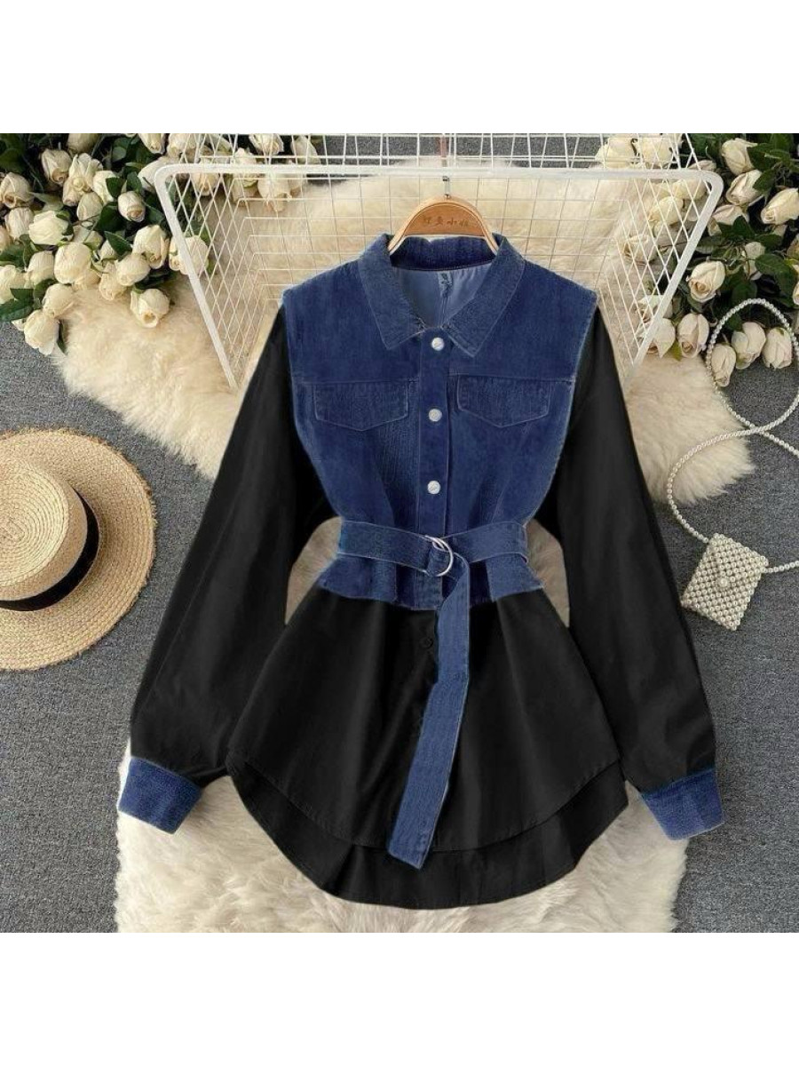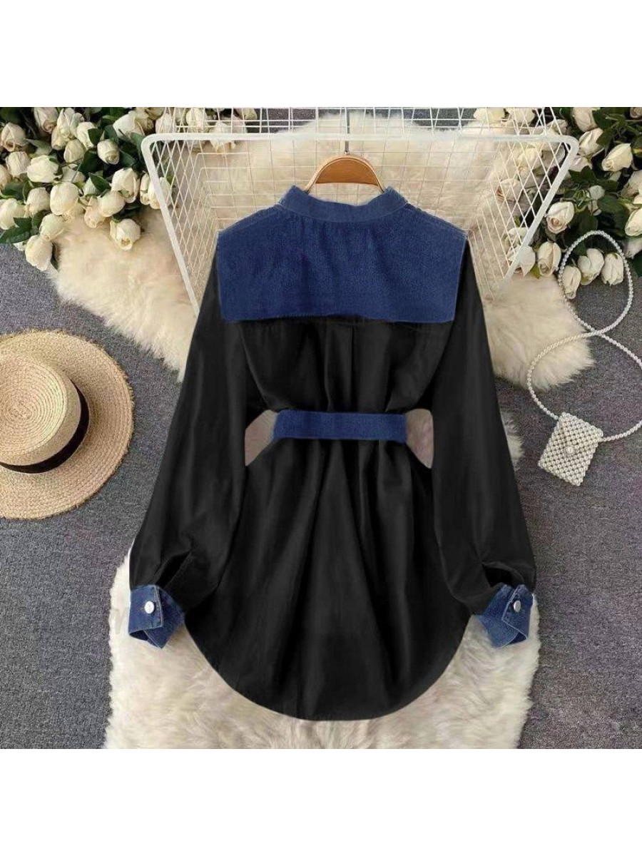 Сукня рубашка Мод: Тканина: костюмка + джинс Розміри: 42-44, 46-48 Кольри: чорний + синій, білий + синій