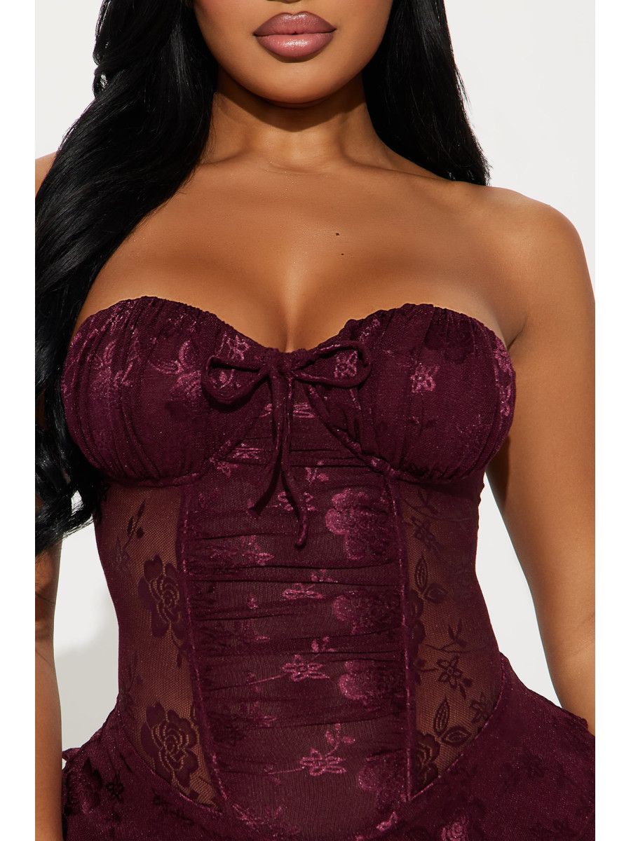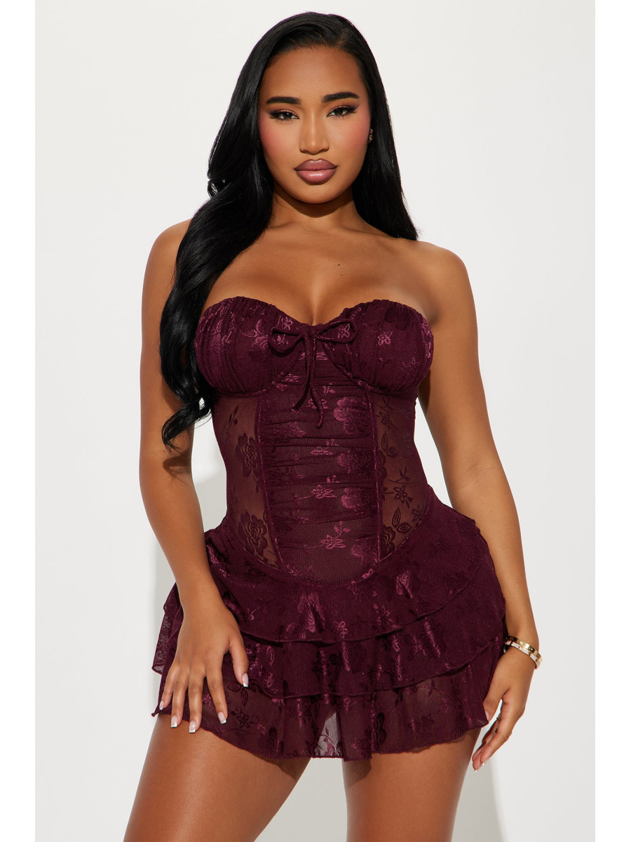 Ця кокетлива мікро-міні сукня "Sweet Pea" стане вашим улюбленим вибором для особливих випадків. Вишукане мереживо та елегантний виріз "сердечко" створюють романтичний образ, а корсетний дизайн та шнурівка ззаду забезпечують ідеальну посадку. Сукня без бретелей з вишуканим мереживним оздобленням додасть вашому образу неперевершеної чарівності. Завершує образ ніжне рюшеве оздоблення по краю.