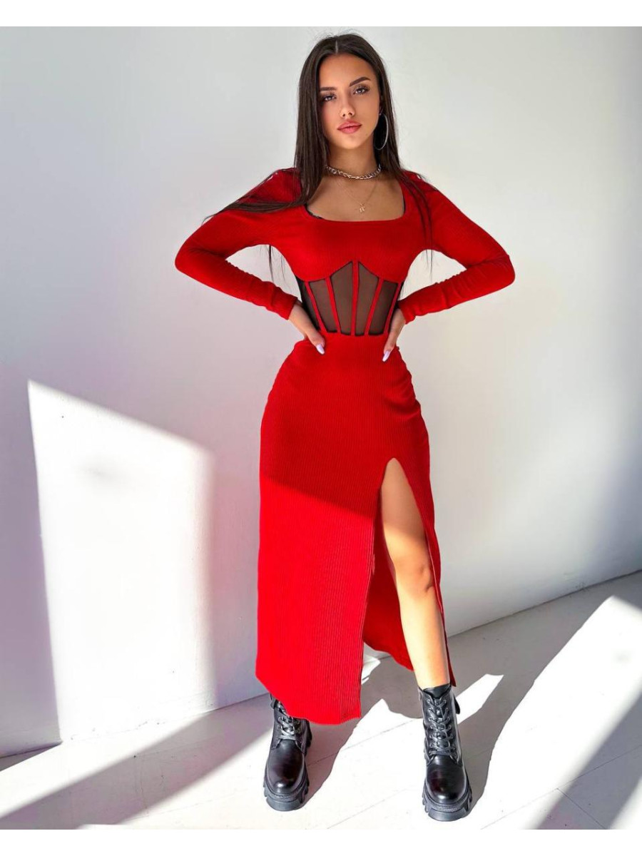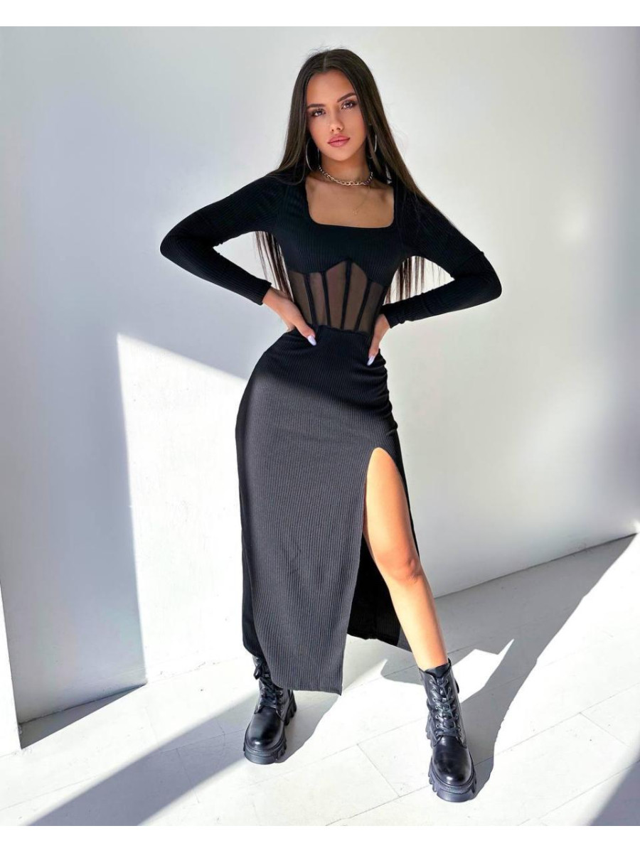 Сукня рубчик сітка корсет розріз