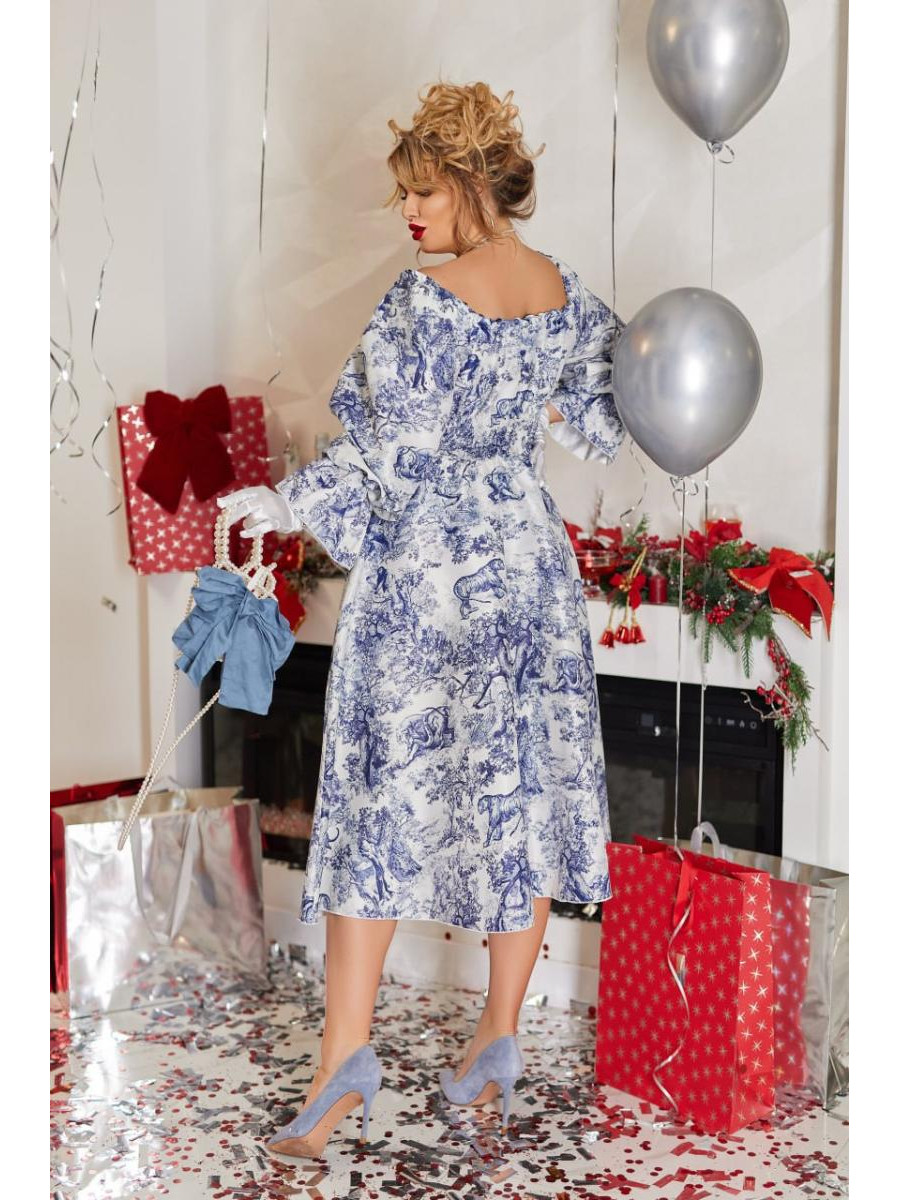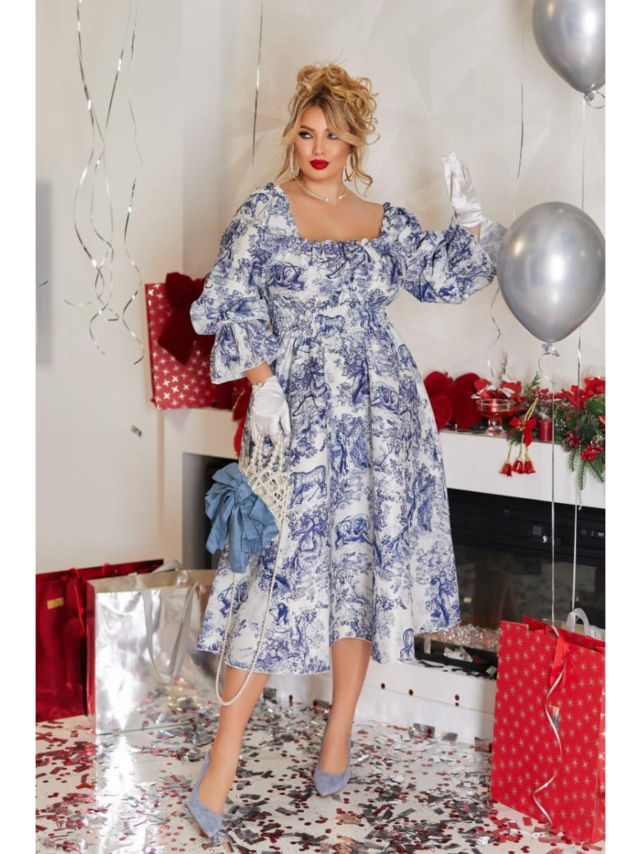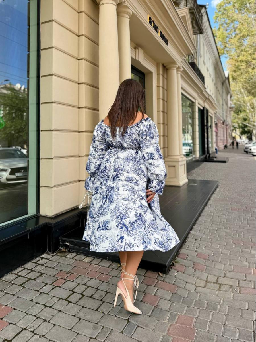Тканина : щильна нестрейчева тканина, гарно тримає обʼєм. Принт. Турецького виробництва. Талія на гумці- гарно сідає на фігурі. Довжина від талії 80 см. Плечі на гумці тягнуться. Тому точну довжину сказати неможна Розміри :