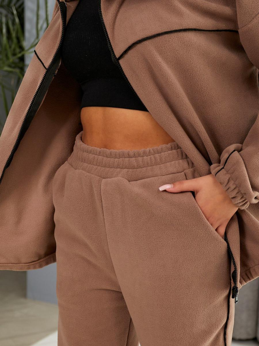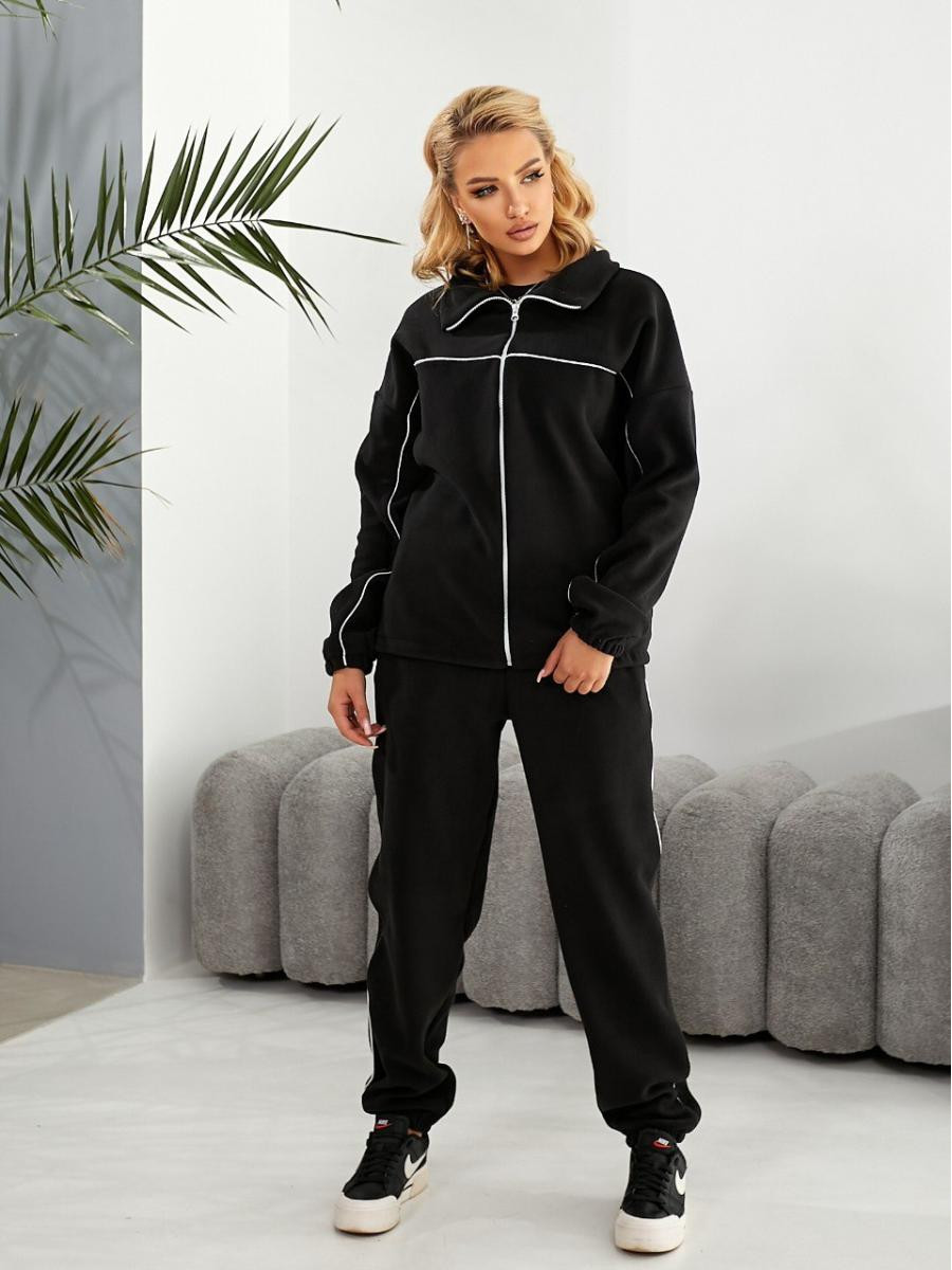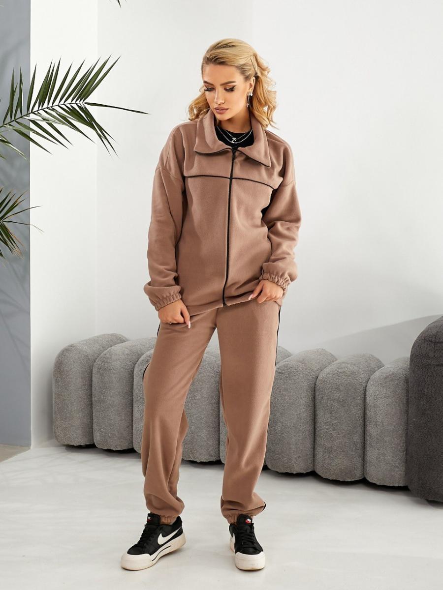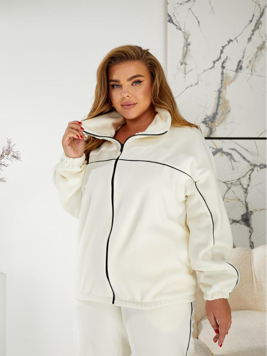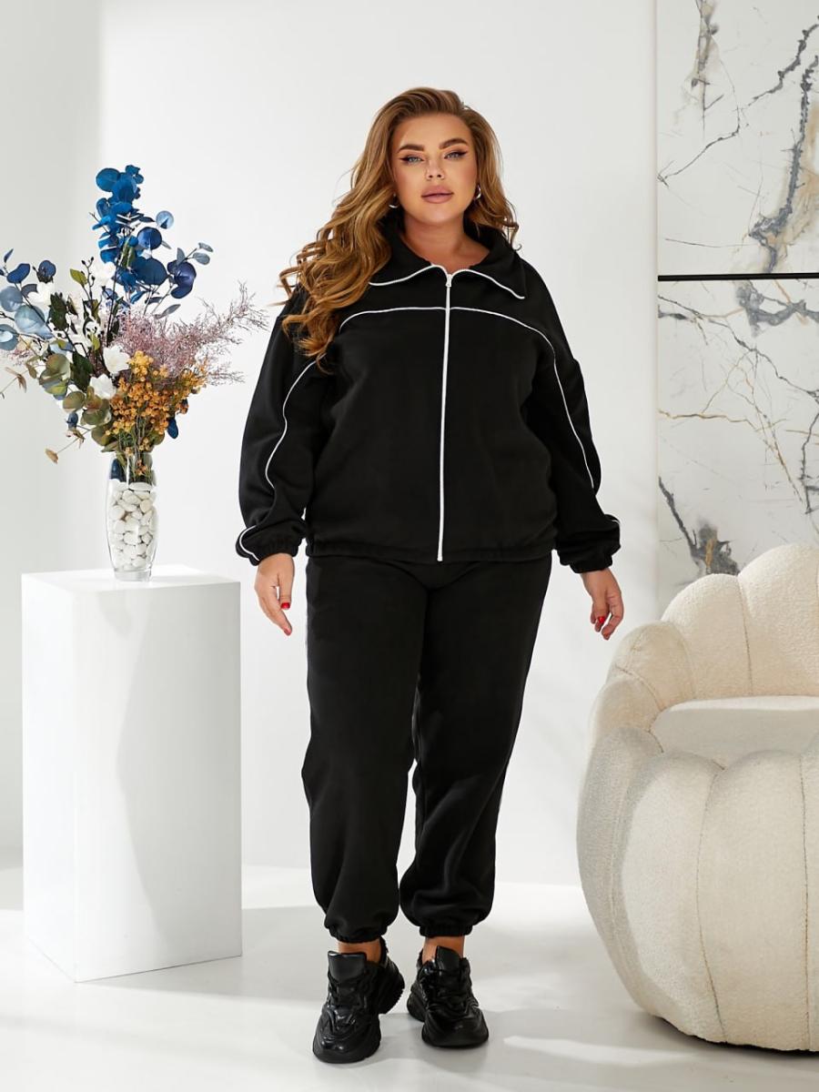 Спортивний костюм флисовий модель – 725-5425 ВИМІРИ модель 725-5425 42-44: Кофта: ОГ-122см, ОС-80-106см, довжина – 65см, рукав по внутр.шву — 48см Штани: ОТ-68-90см, ОС-96см довжина — 102см, по внутр.шву — 72см 46-48: Кофта: ОГ-128см, ОС-84-112см, довжина – 65см, рукав по внутр.шву — 48см Штани: ОТ-74-94см, ОС-102см довжина — 102см, по внутр.шву — 72см 50-52: Кофта: ОГ-136см, ОС-88-116см, довжина – 66см, рукав по внутр.шву — 48см Штани: ОТ-80-102, ОС-116см довжина — 102см, по внутр.шву — 72см 54-56: Кофта: ОГ-148см, ОС-100-124см, довжина – 67см, рукав по внутр.шву — 48см Штани: ОТ-86-106см, ОС-120см довжина — 104см, по внутр.шву — 74см Матеріал: турецький флис Розміри: 42-44, 46-48 — Розміри: 50-52, 54-56 — +50 Кольори: чорний, темно-сірий, мокко, молочний Кофта вільного крою, застібається на блискавку. Штани джогери, 2-і кишені. Кофта та штани оброблені кантом.