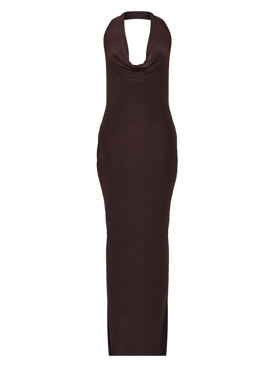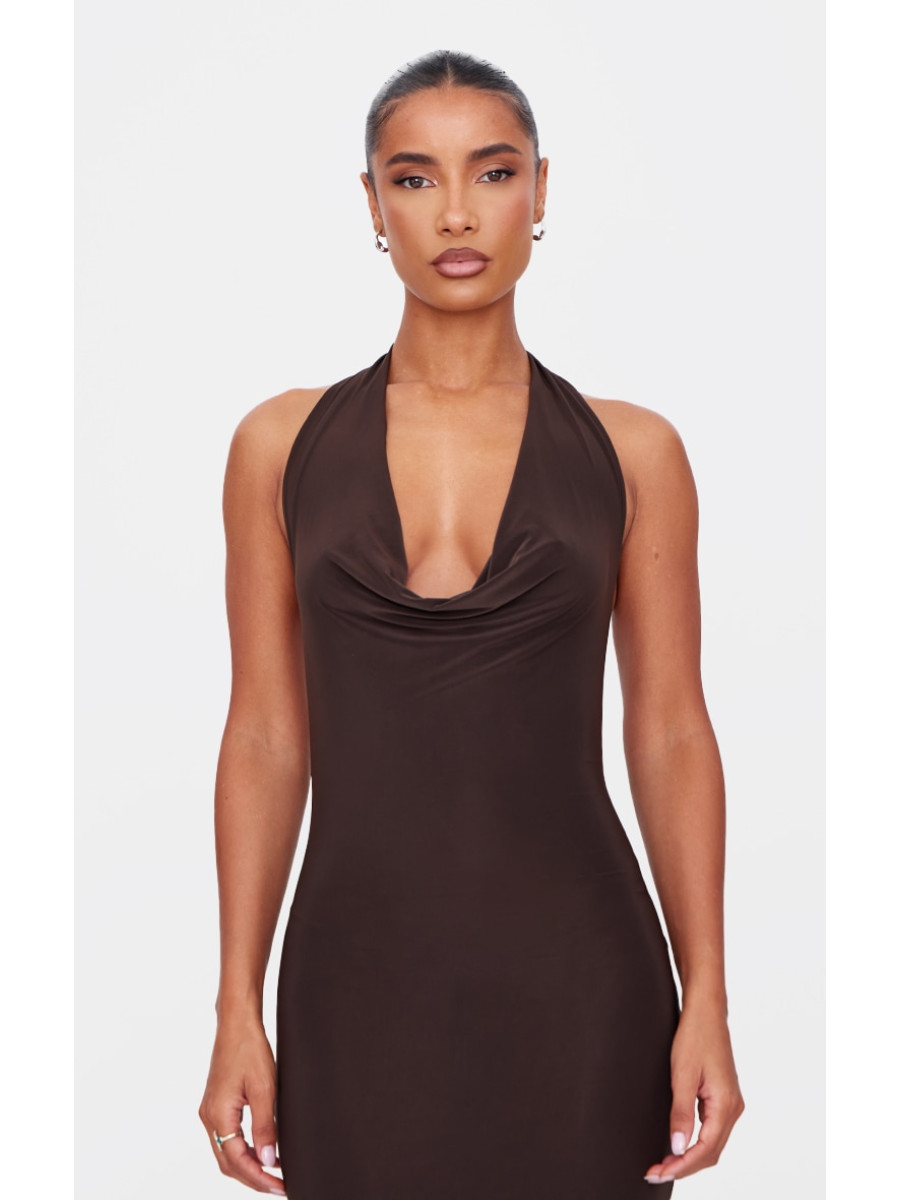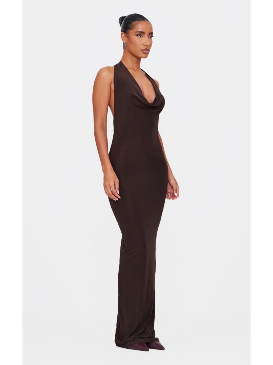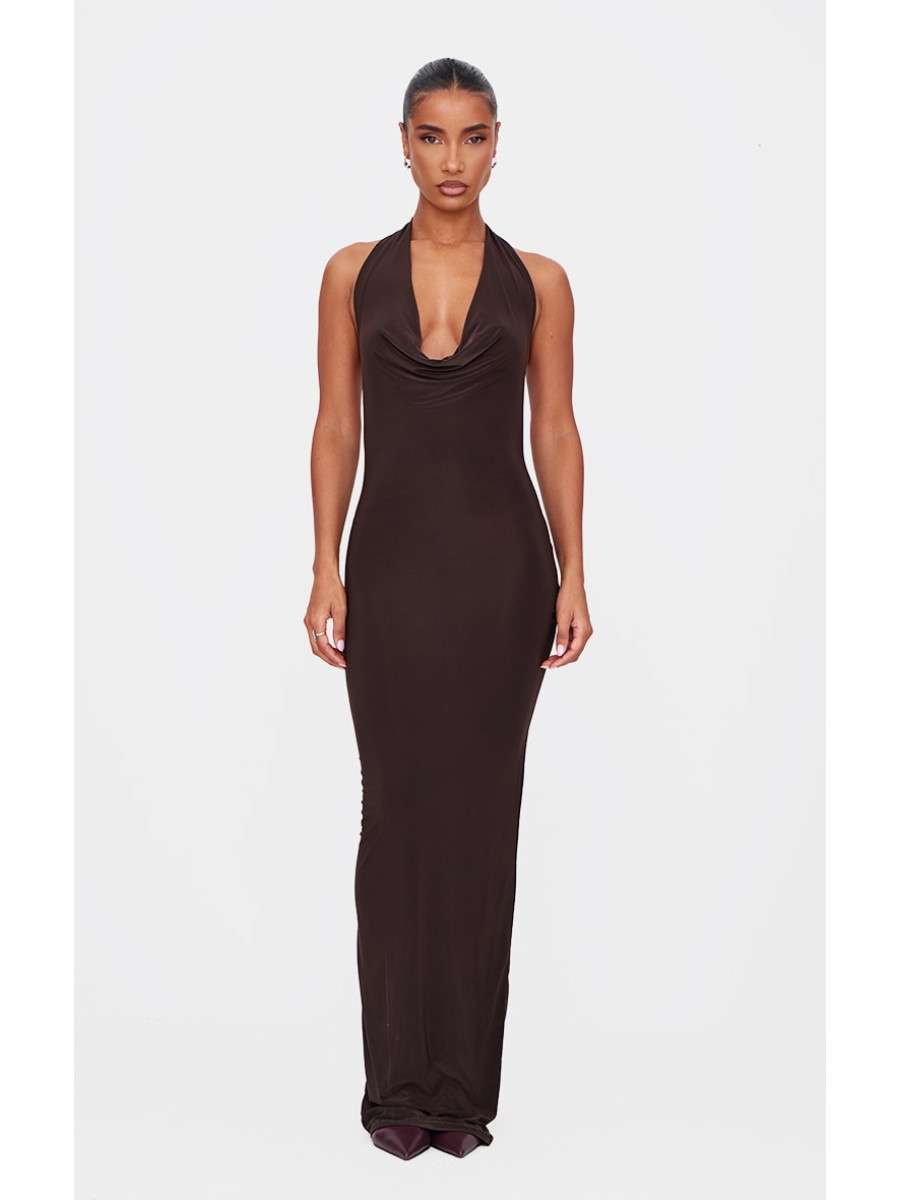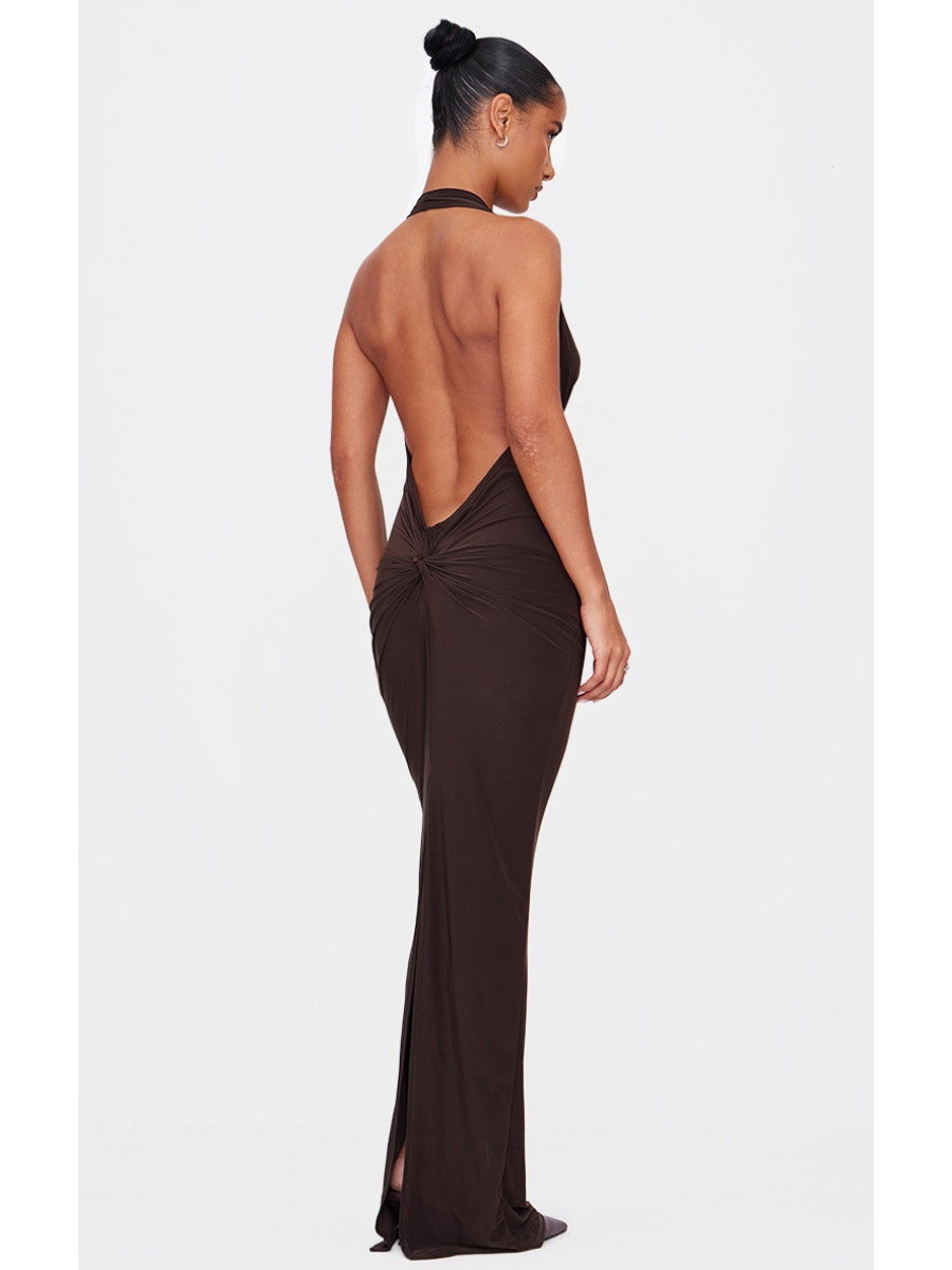 Шоколадна м’яка дотик шиї на шию скрутити деталі максі плаття