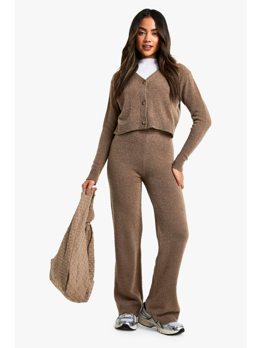 М'який трикотажний кардиган з V-подібним вирізом і трикотажне в'язання широких штанин