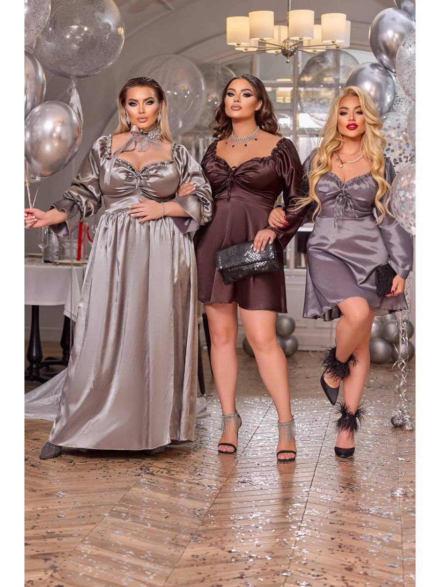Матеріал: шовк-атлас. Сукню можна моделювати: мотузочки, розташовані в районі грудей, можна зав’язати бантиком або зробити виріз декольте глибшим. ззаду шнурівка – регулює приталеність. Виміри: 42-46: Довжина виробу 84 см. ОГ 80-96 см, ОТ 56-82 см (ззаду шнурується і приталюється), ОС 82-100 см 48-52: довжина 90 см, ОГ 98-105, ОТ 75-95, ОС 104-120 54/58: довжина 90 см, ОГ 106-117, ОС 118-133 60-64: ОГ 120-130, ОТ 88-130, ОБ 130-145