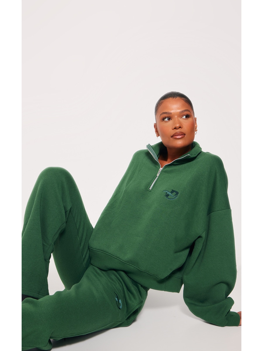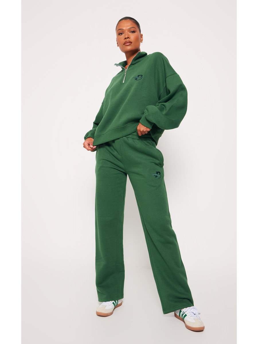 Широкі джоггери PRETTYLITTLETHING із вишитим лісово-зеленим логотипом