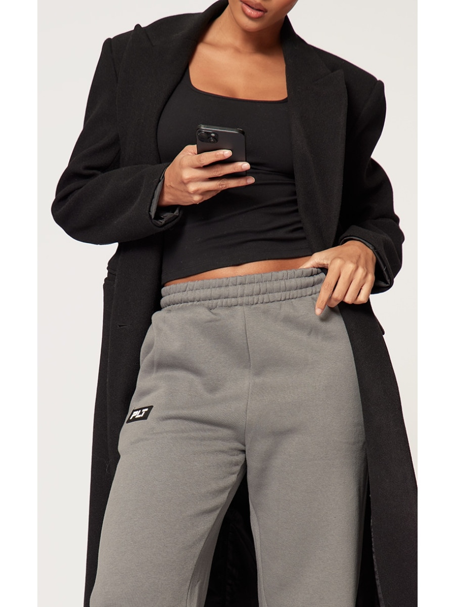 Прямі штани PRETTYLITTLETHING Charcoal Grey Logo Badge